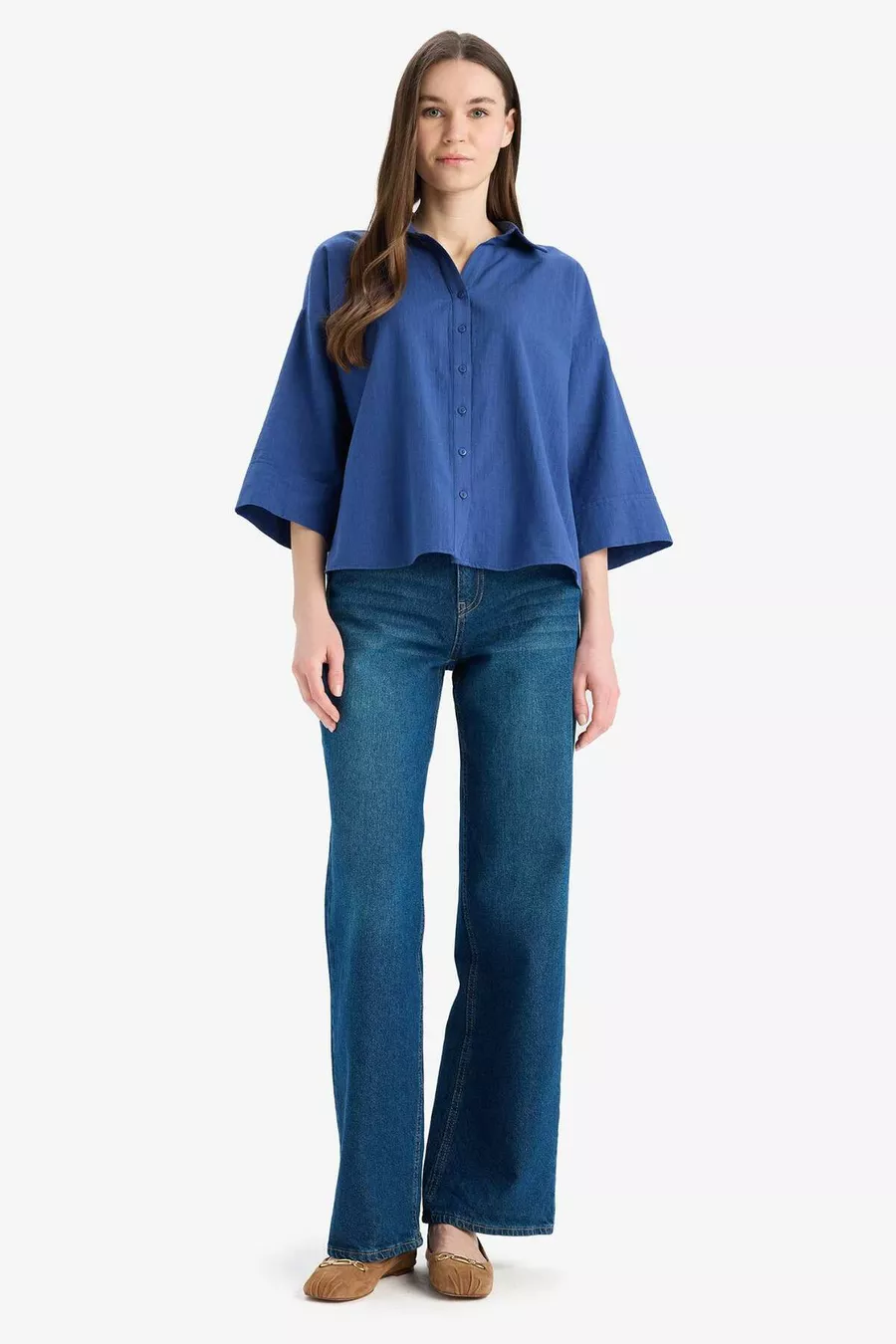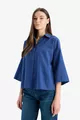 Patroon: Effen Pasvorm: Regular Kraagtype: Overhemdkraag Stoftype: Geweven Mouwtype: Korte mouw Kleur: Blauw Materiaal: Linnenmix Zak: Zonder zak Mouwlengte: Kort Lengte: Standaard Omgeving: Sportswear Weeftype: Linnenmix Duurzaamheidsdetail: Nee Riem/riemoptie: Zonder riem Materiaalsamenstelling: 96% Katoen, 4% Linnen Wasinstructies: T44 Herkomst: TR