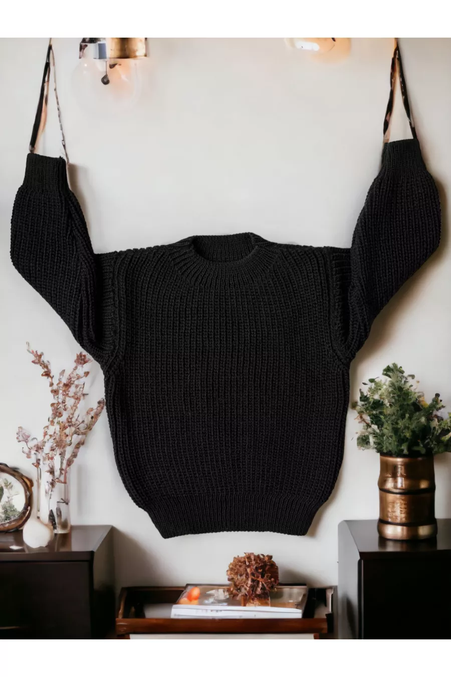 Patroon: Effen Model: Regular Hals type: Ronde hals Stof type: Tricot Kleur: Zwart Materiaal: Acryl Mouw type: Standaard mouwen Zak: Zonder zak Product details: Met elastiek Product type: Effen Mouw lengte: Lang Dikte: Dik Collectie: Unisex Silhouet: Oversized Occasion: Dagelijks Lengte: Regular Extra eigenschap: Extra zacht Print/Borduur techniek: Zonder print Persoonlijkheid: Cool & Comfort Weefsel type: Gebreid Duurzaamheidsdetails: Ja Aantal stuks: 1 Riem/Gordel: Zonder riem Wasinstructie: T02 Seizoen: Winter