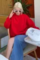 Rode Fiets Hals Oversized Dames Trui