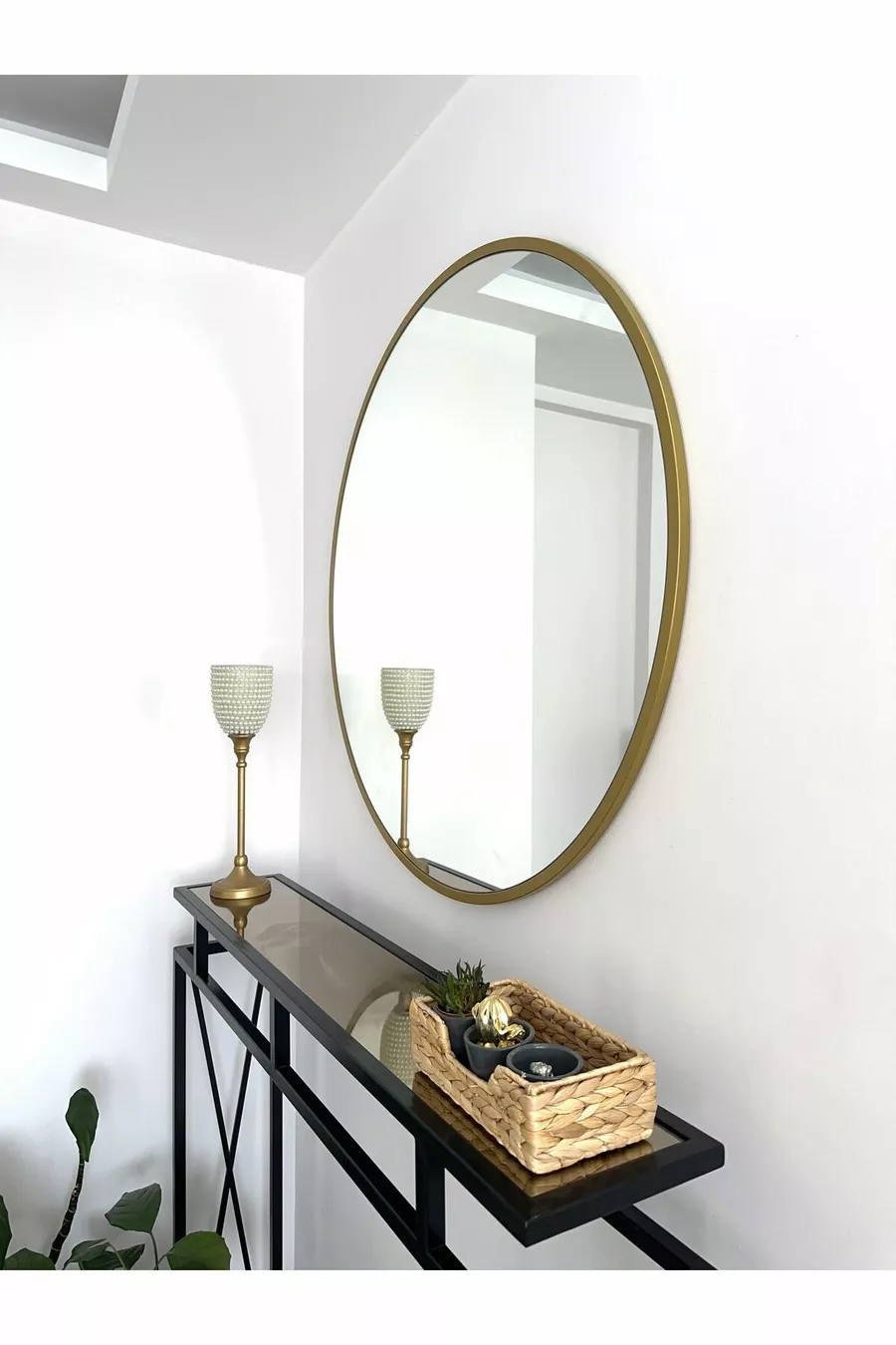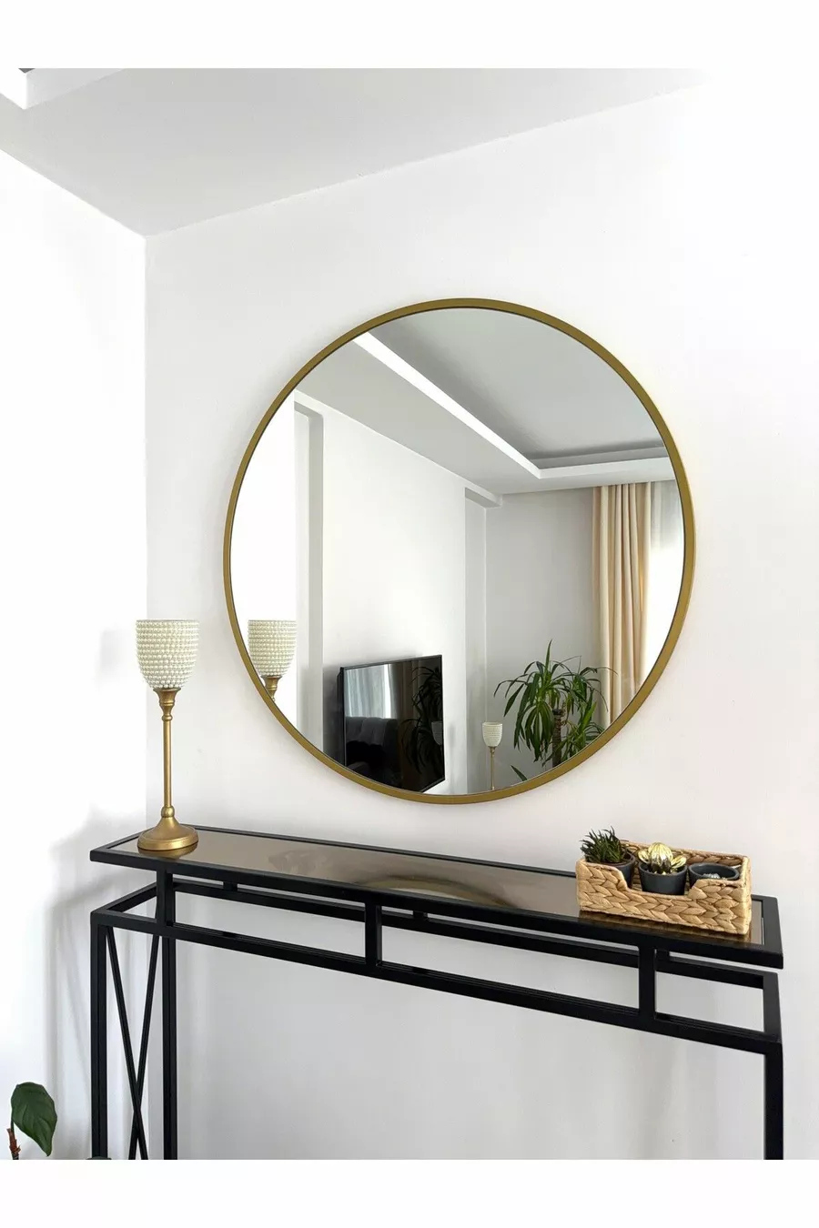 Materiaal: Metaal Kleur: Goud Vorm: Rond Type: Spiegel voor aan de muur Afkomst: TR Kenmerk: Rond