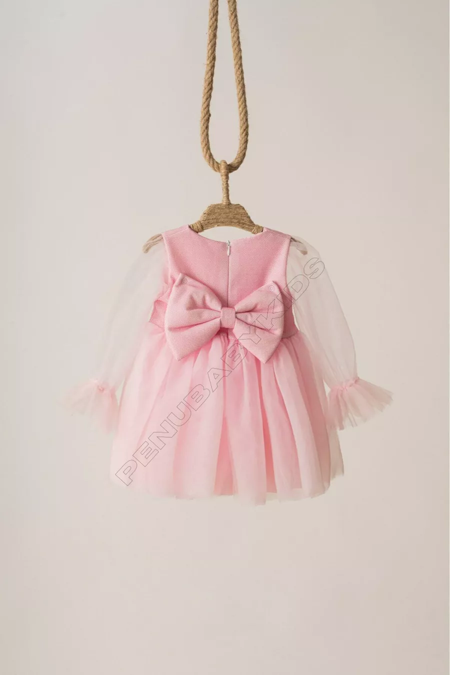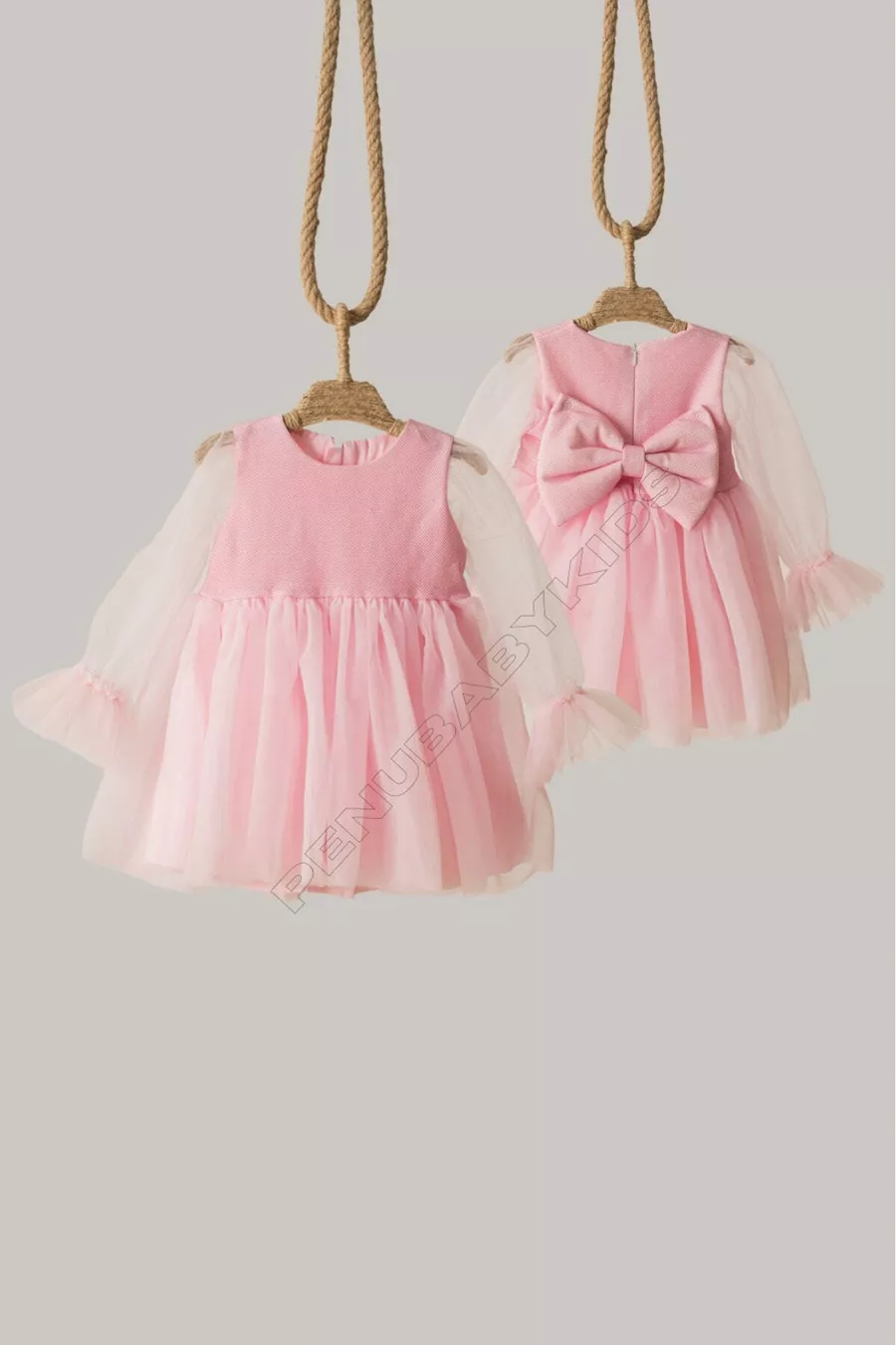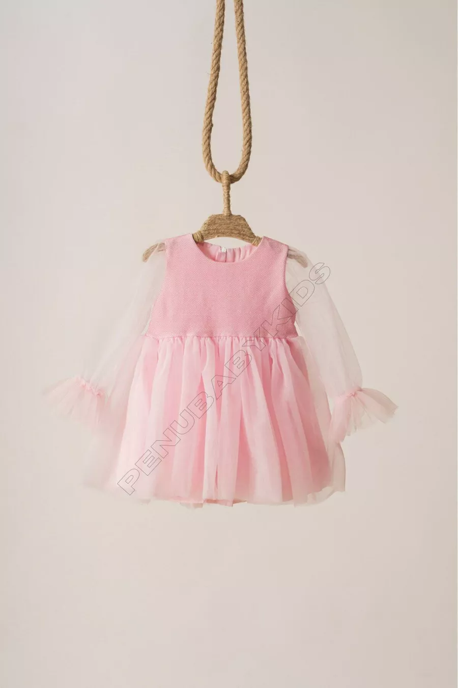 Roze Lange Tule Mouw Details Tutu Meisjes Babyjurk