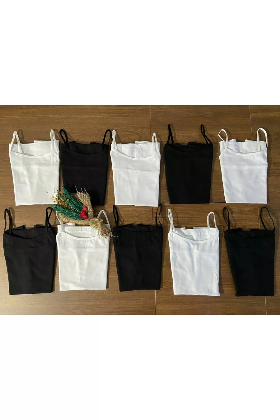 Set van dames zwarte-witte tanktops van rekbare jersey
