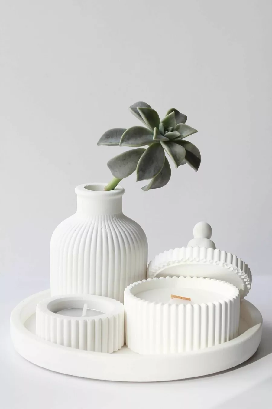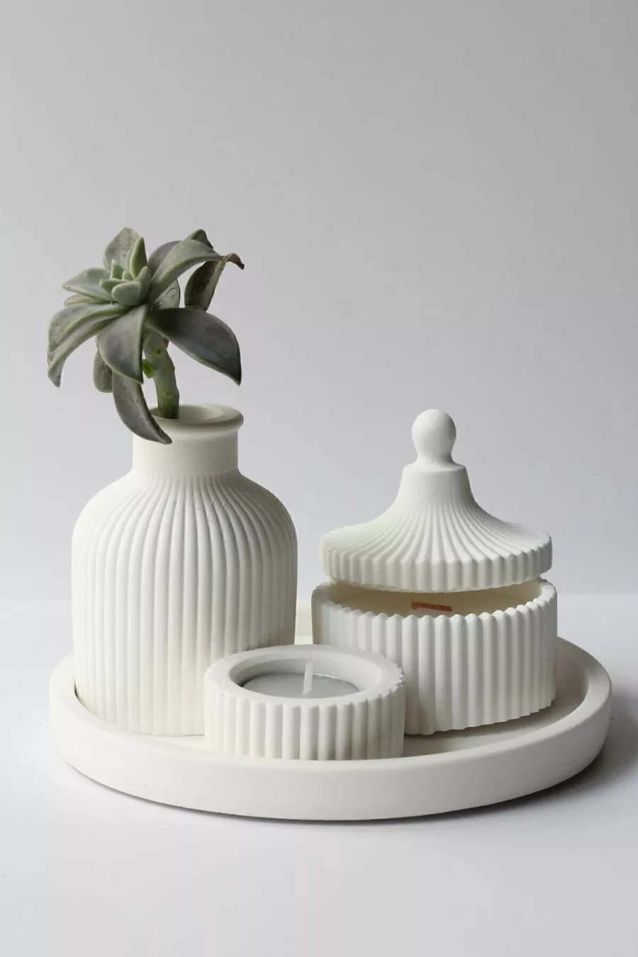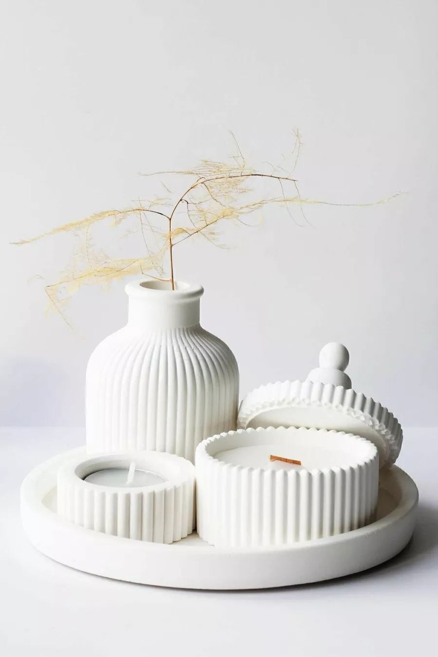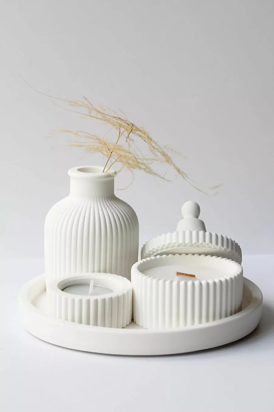 Set van speciale ontwerpgeurkaars en vaasaccessoires in wit (EXCLUSIEF THEELICHT)
