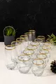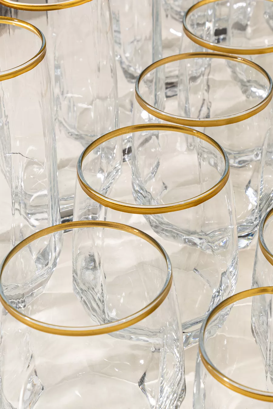 Materiaal: Glas Aantal stuks: 13+ Kleur: Goud Inhoud: 385 ml Kenmerk: Vaatwas Handwas Producttype: Waterglas