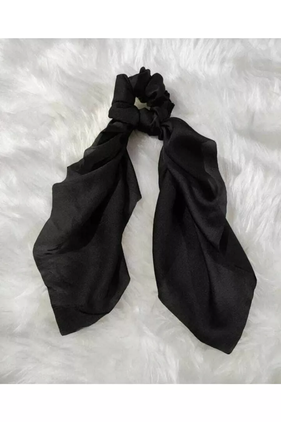 Set van zwarte zijden satijnen haarspeld met sjaal - Sjaalhaarspeld