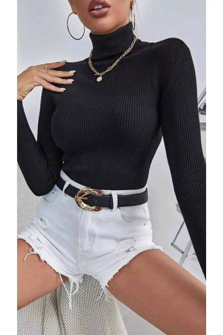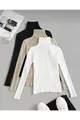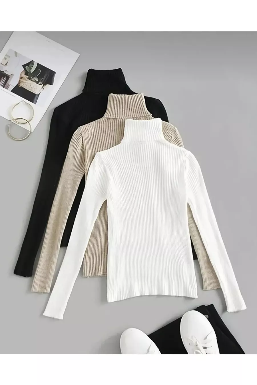 Set van 3 Zwart, Wit en Beige Katoenen Coltrui met Geribbelde Slimfit Hals