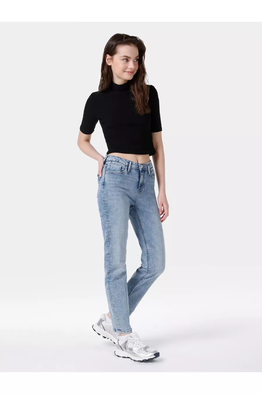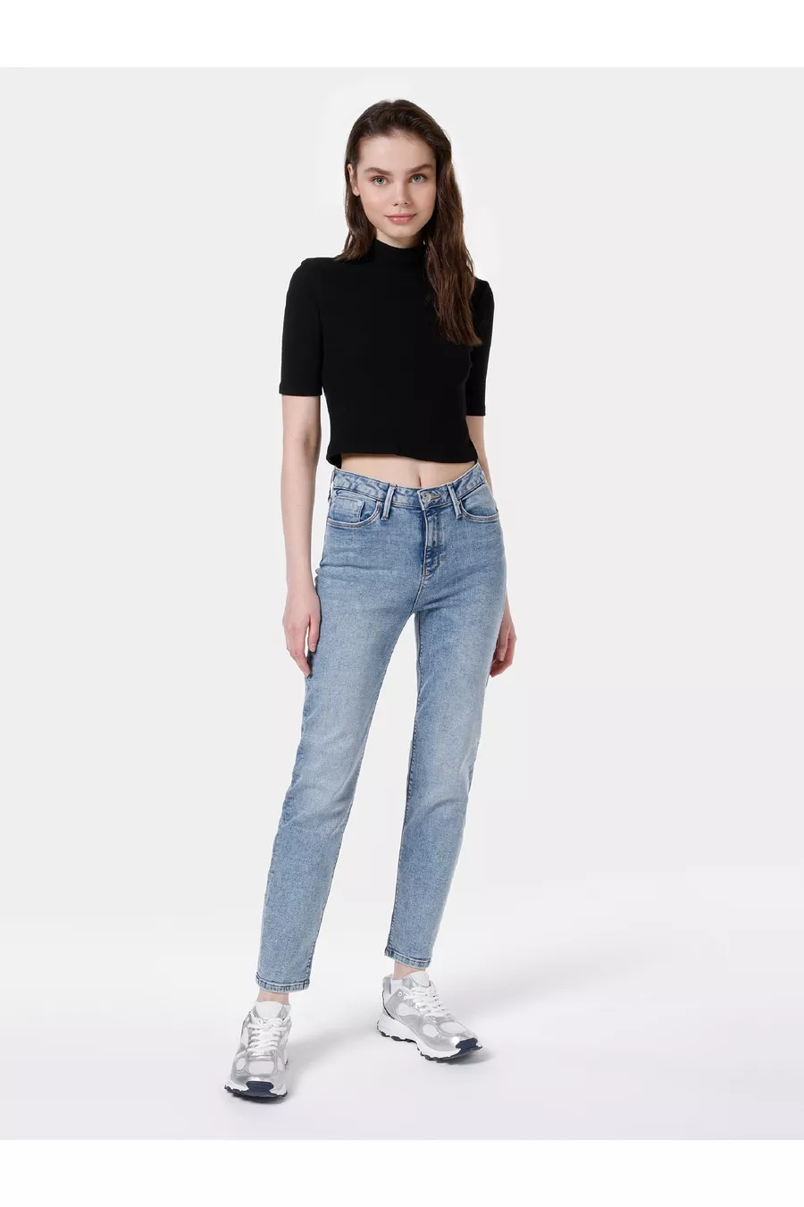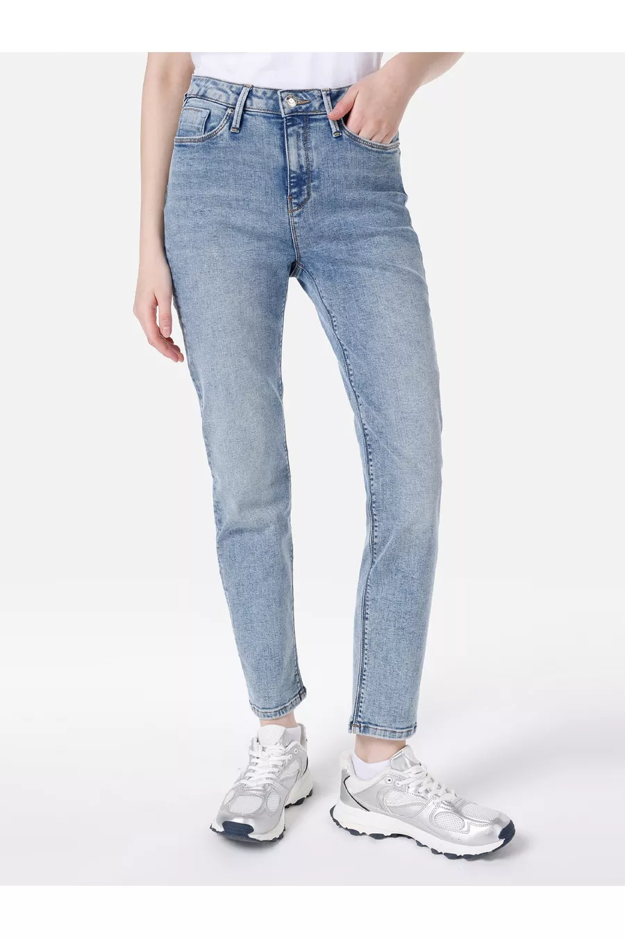 Slim Fit Midden Taille Rechte Pijp Dames Indigo Jeans