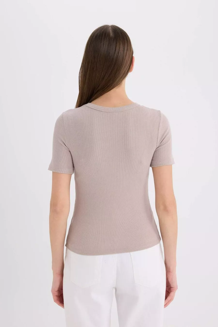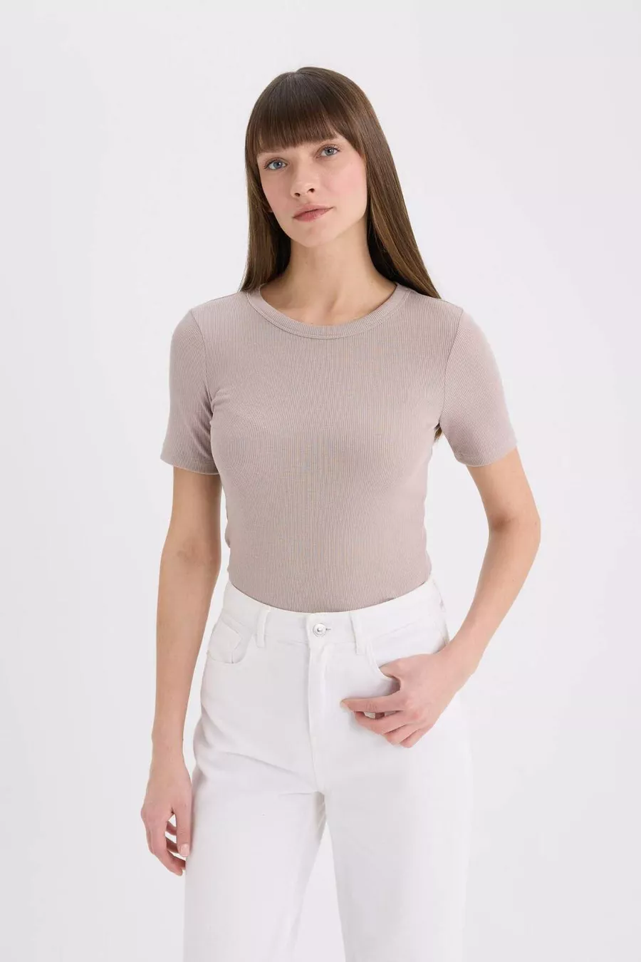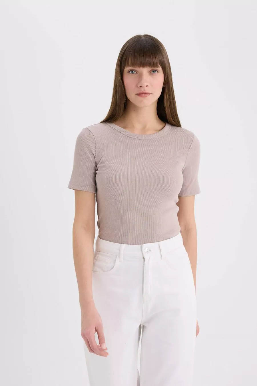 Slim Fit Strakke Pasvorm Ronde Hals Geribbelde Basic Effen Korte Mouwen T-shirt AU