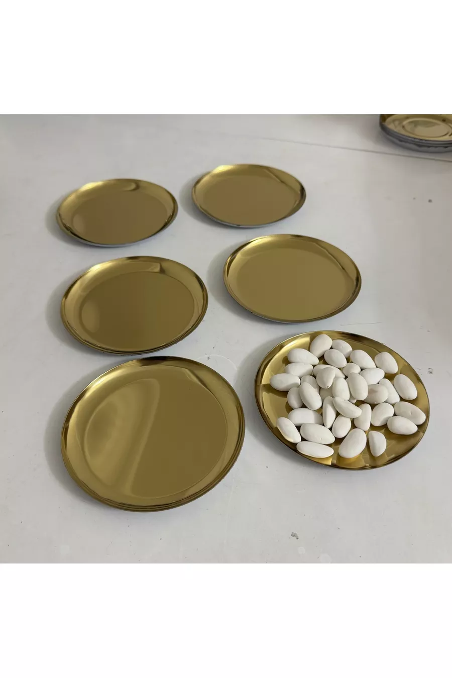 Materiaal: Roestvrij staal Aantal onderdelen: 6 Kleur: Geel Kenmerk: Geschikt voor magnetron Thema / Stijl: Modern Vorm: Rond Producttype: Serveerbord Oorsprong: TR
