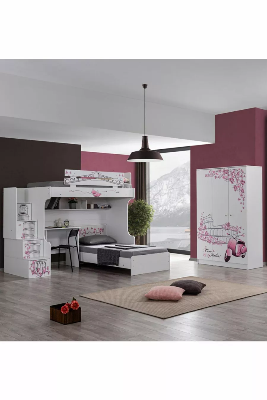 Stapelbed, Pisa Stapelbed Bed Bureau 3-Deurs Kast