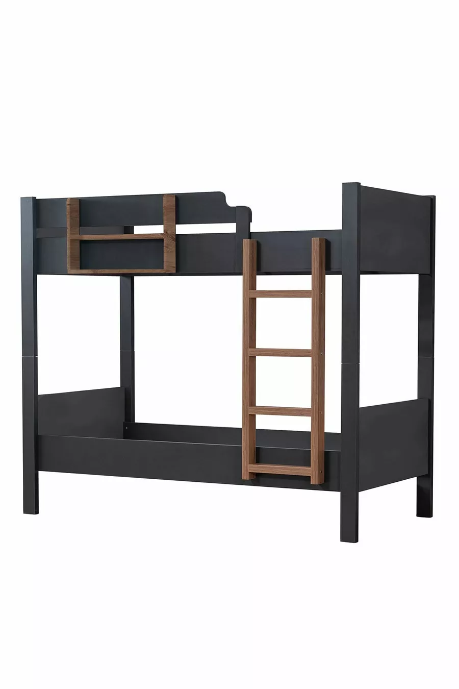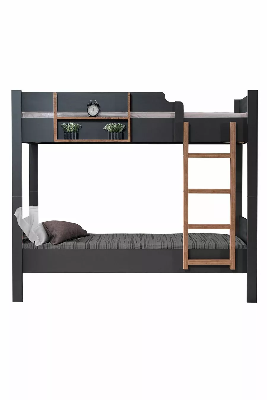 Stapelbed, Uitschuifbaar Stapelbed voor Azië, 2-persoons Antraciet - Walnoot - Cm