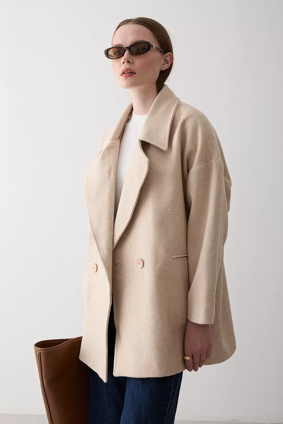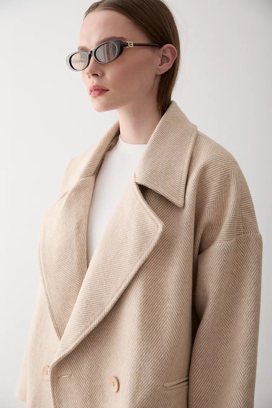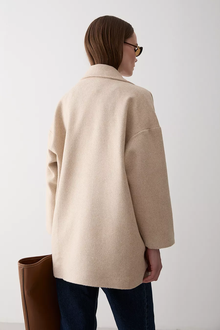 Steen 1e Klasse Kwaliteit Visgraat Oversized Kasjmier Jas