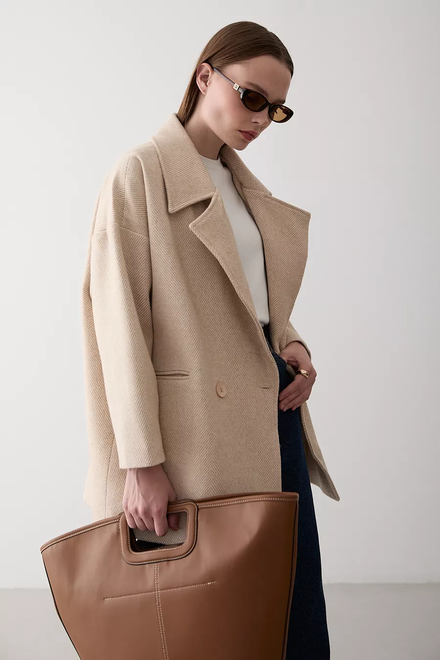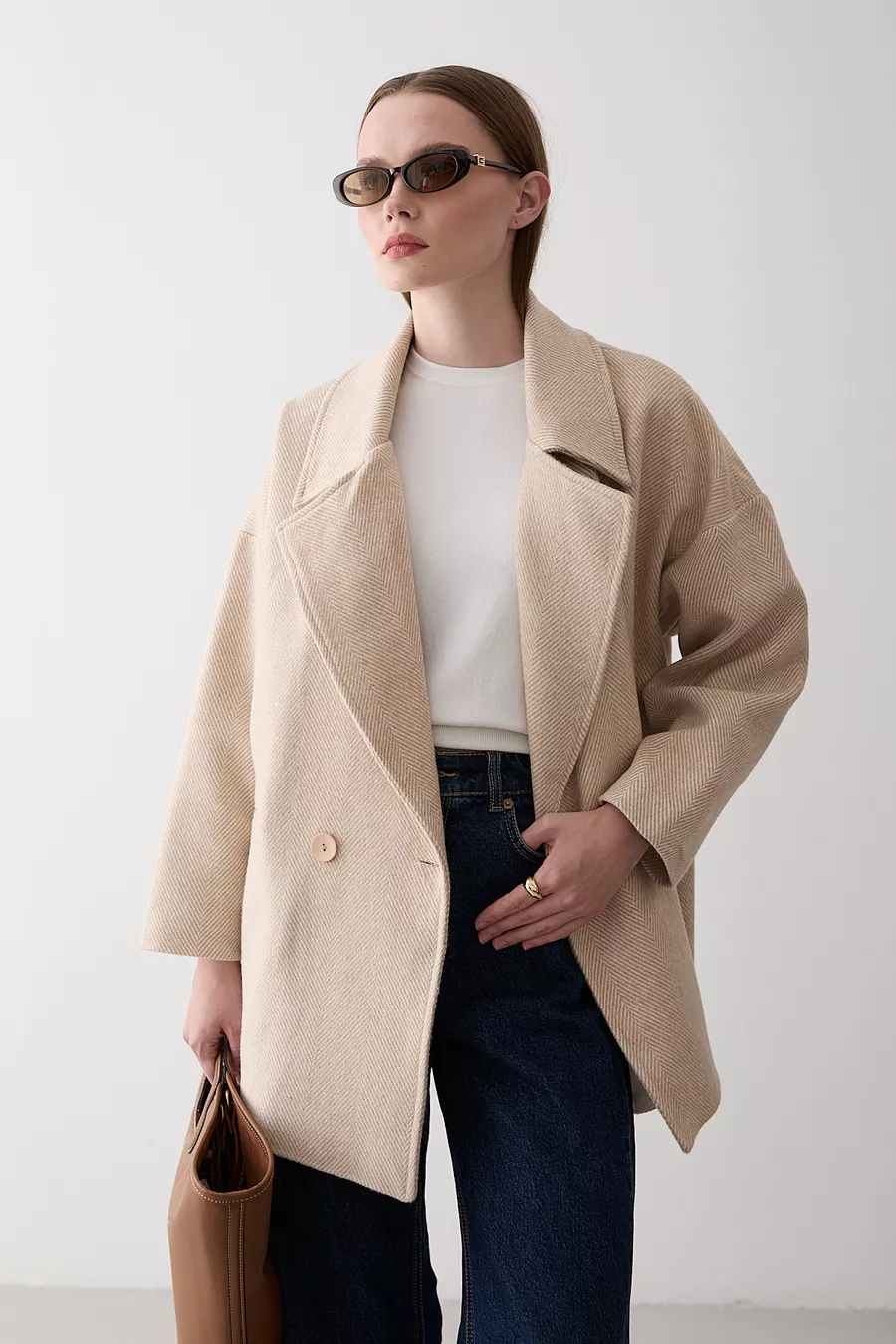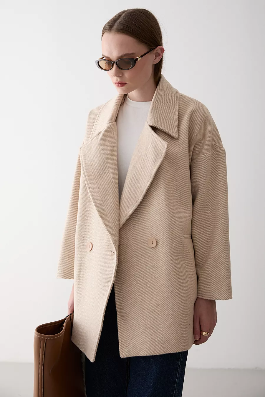 Steen 1e Klasse Kwaliteit Visgraat Oversized Kasjmier Jas