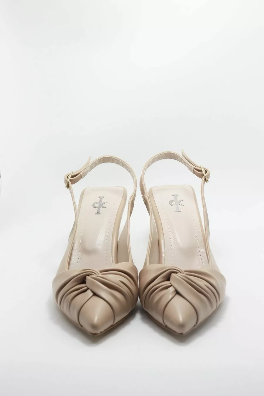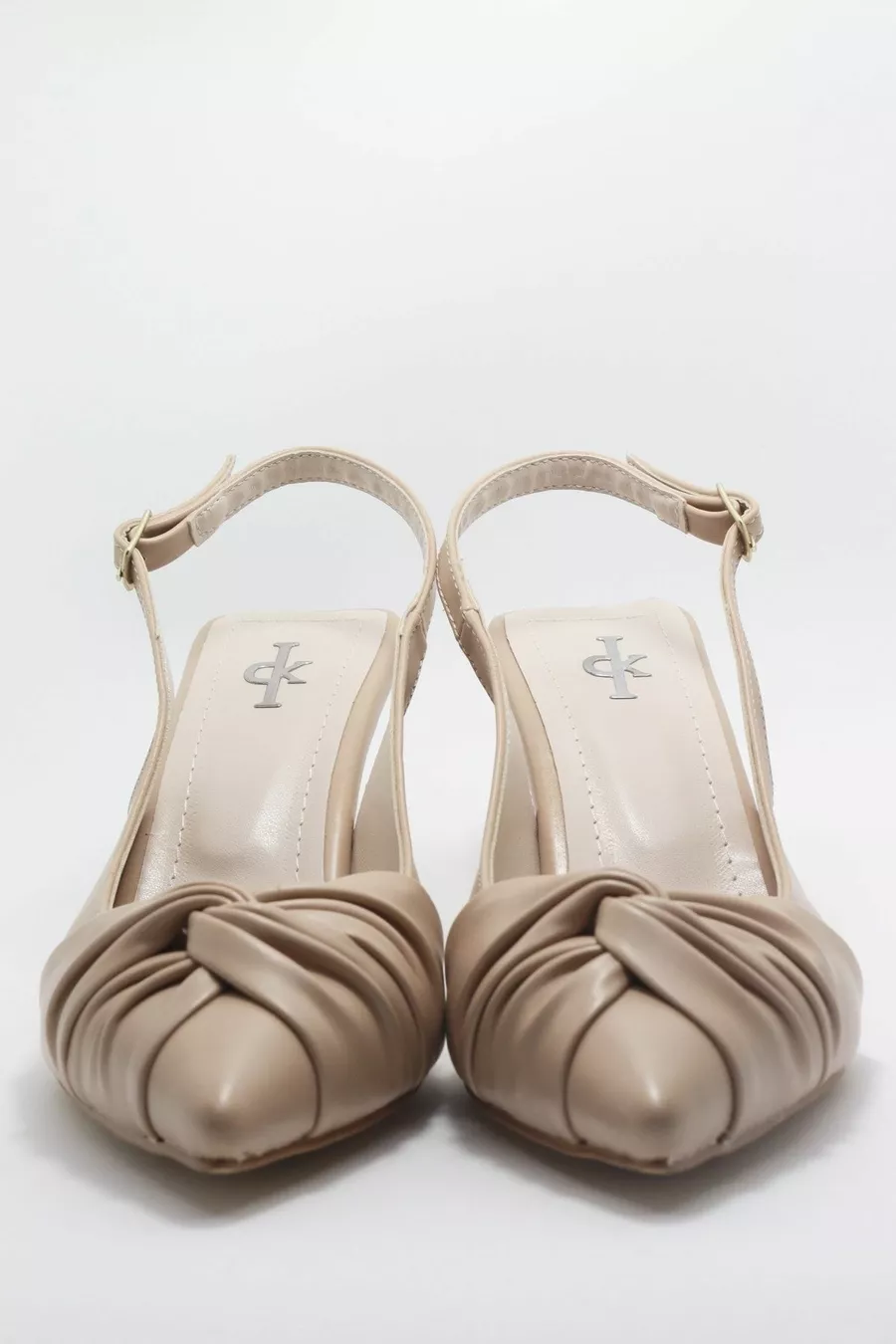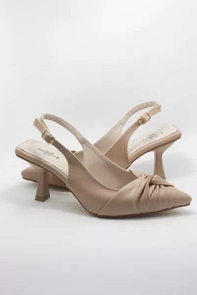 Stompe beige dameshakken met open rug en knucled goblet hakken