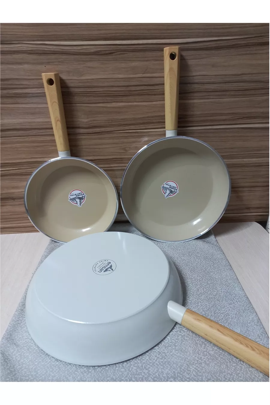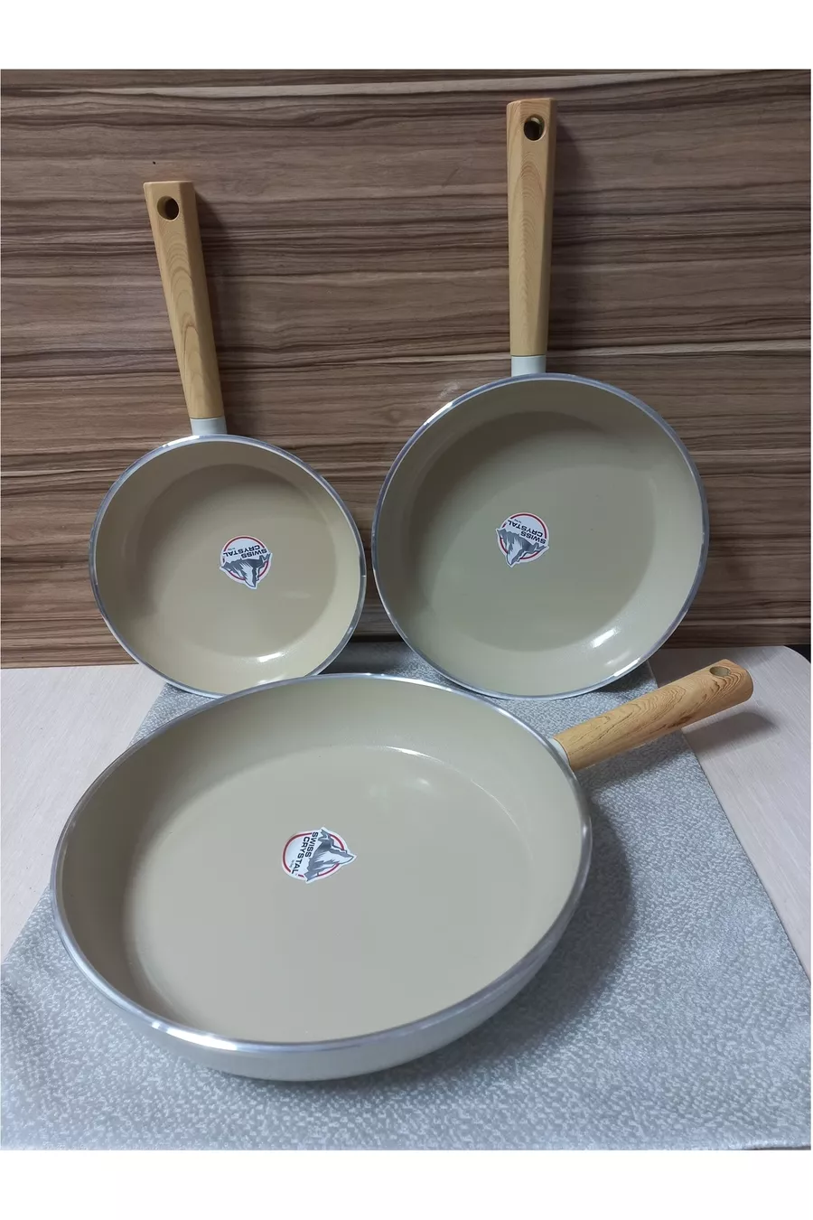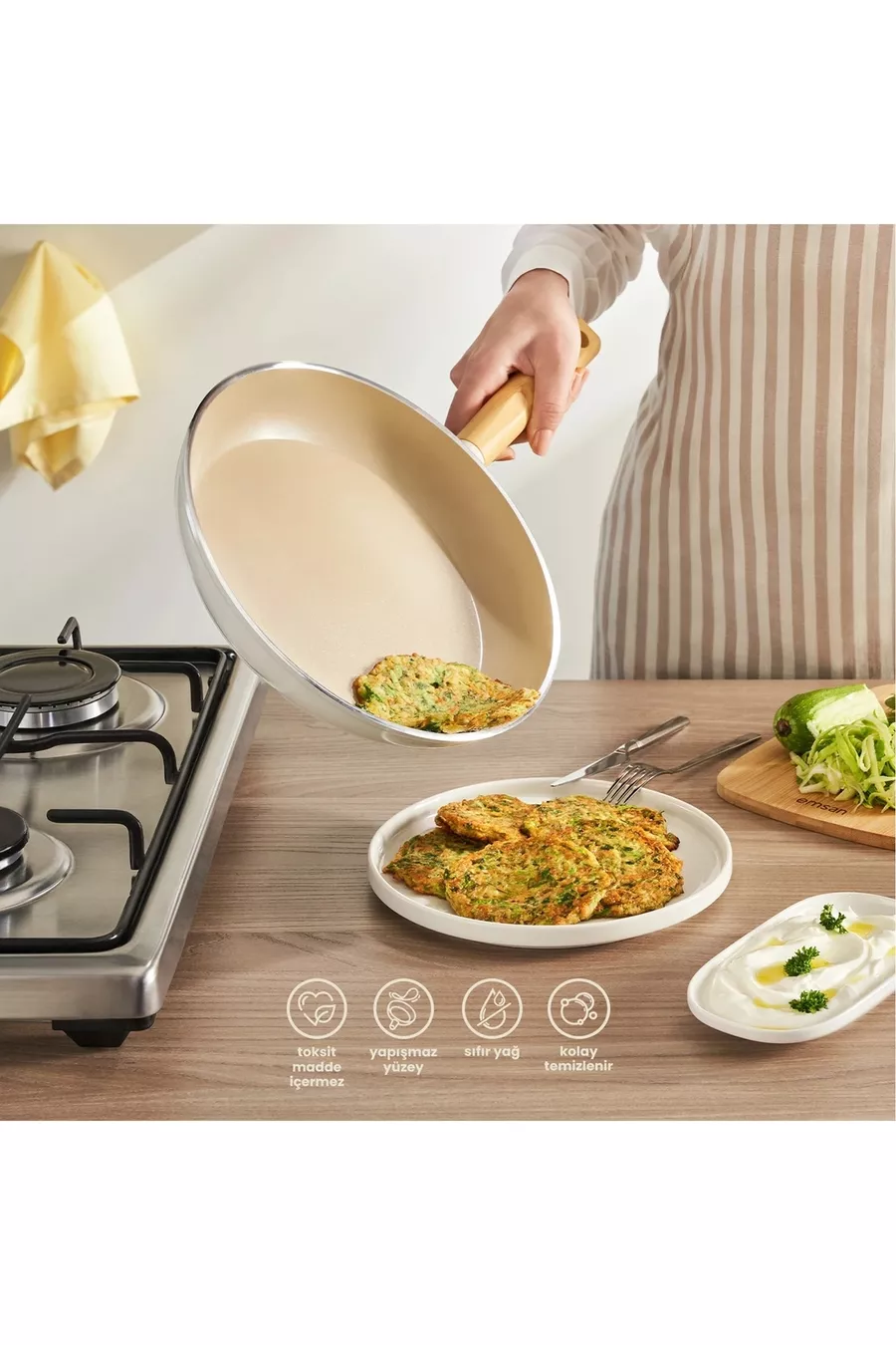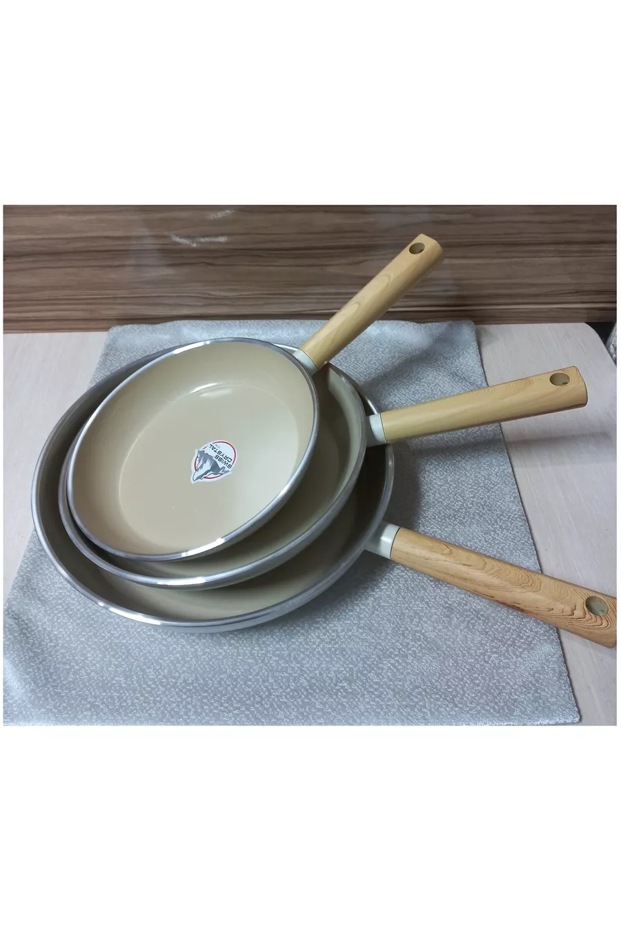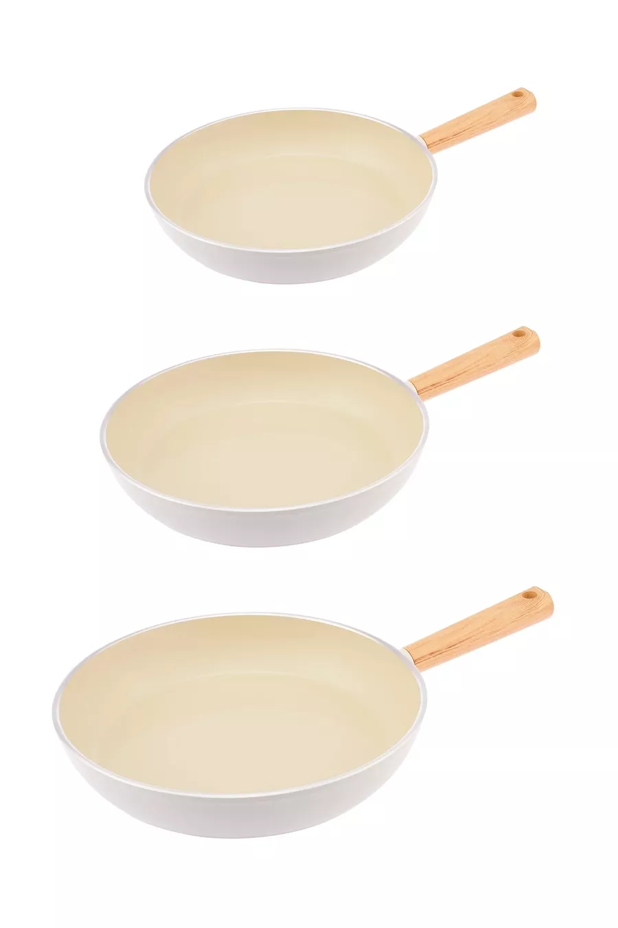 Afmetingen: 22 cm Aantal stukken: 3 Kenmerk: Anti-aanbakbodem Producttype: Bakpan Buitenkant materiaal: Keramiek Binnenkant materiaal: Keramiek Kleur: Crème Materiaal: Keramiek Kleur: Bruin