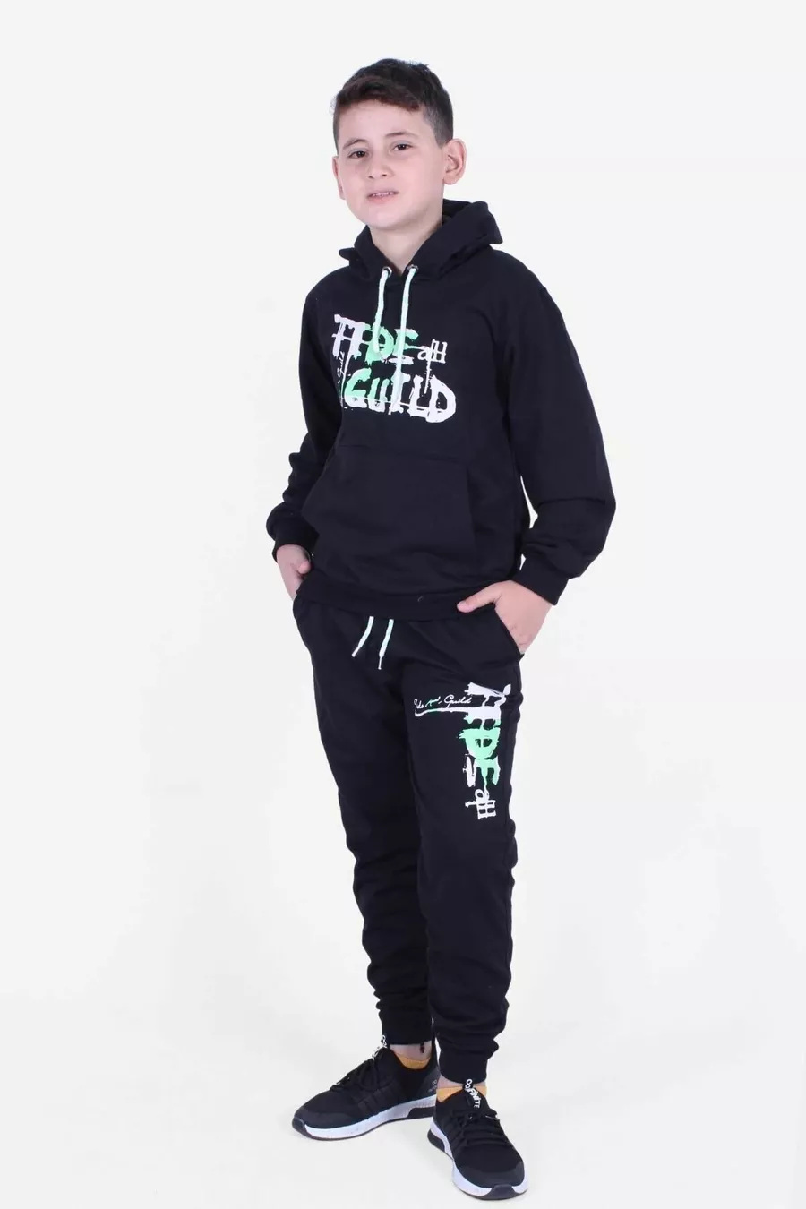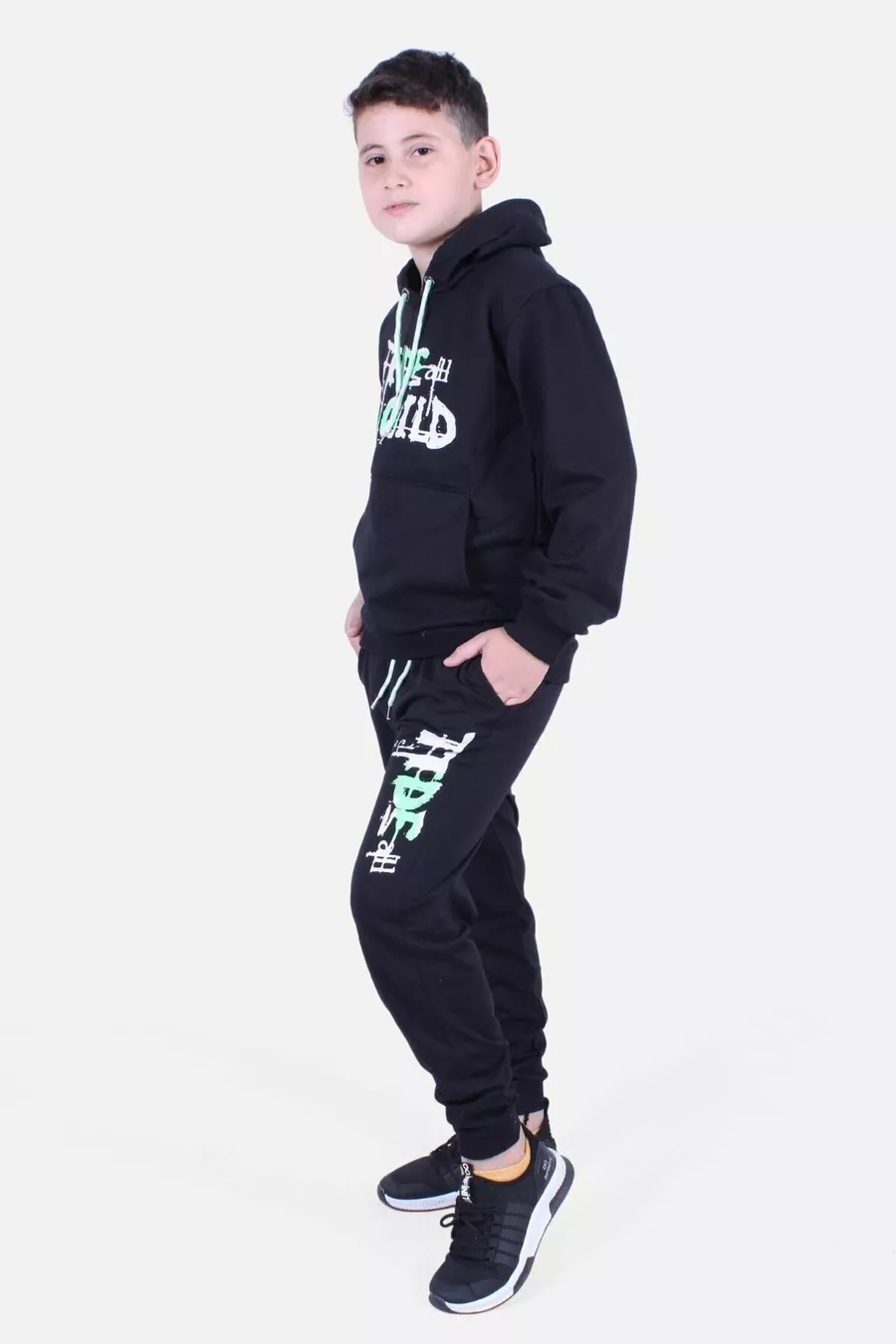 Materiaal: Katoen Sluiting: Zonder sluiting Pijplengte: Lang Pijp type: Elastische pijp Mouw type: Lange mouw Pasvorm: Regular Kleur: Zwart Productdetails: Met zakken Mouwlengte: Lang Patroon: Bedrukt Zak: Twee zakken Collectie: Gelicentieerd Pakketinhoud: 2-delig Stof type: Gebreid Extra kenmerk: Verstelbare taille Print / Borduur techniek: Digitale print Weef type: 2-draads Duurzaamheidsdetail: Ja Persona: Cool & Comfort Taille: Normaal Omgeving: Dagelijks Lengte: Standaard Silhouet: Basic Materiaal samenstelling: 80% Katoen, 5% LYC, 15% Polyester Kraag type: Met capuchon Boven- en onderset: Sweatshirt-Broek Wasinstructie: Binnenstebuiten wassen Seizoen: Alle seizoenen Herkomst: TR Aantal stukken: 2
