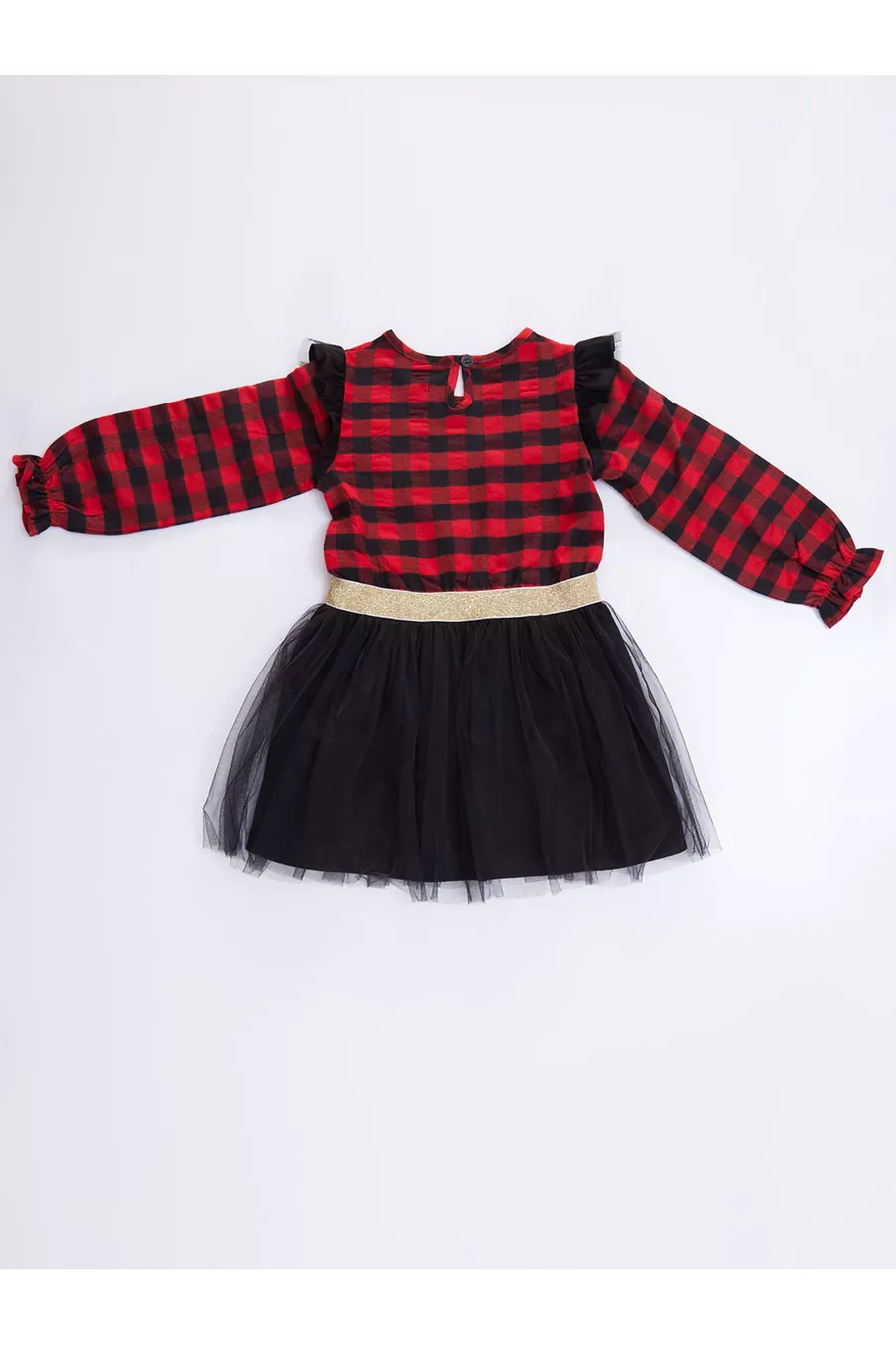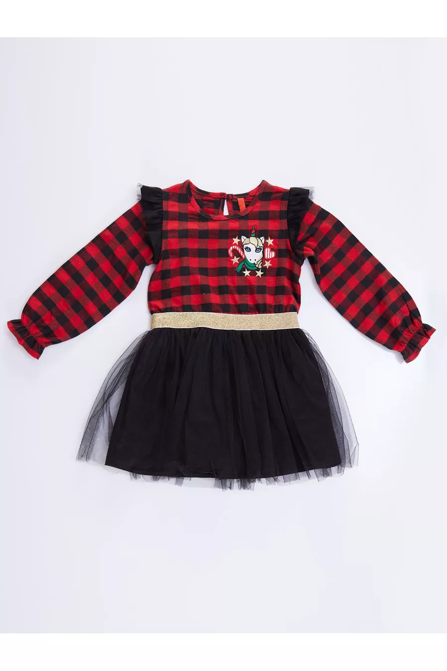 Unicorn Geruite Tule Kerstmeisjes Rode Jurk