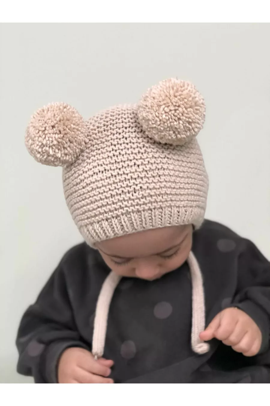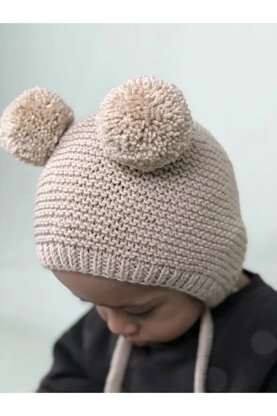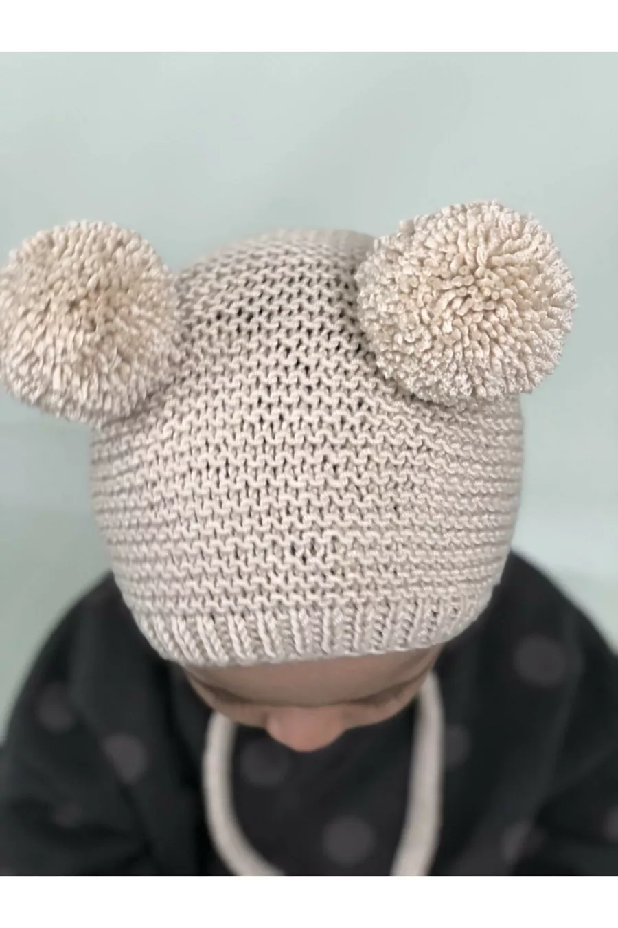 Unisex Gebreide Babymuts met Pompon - Crème