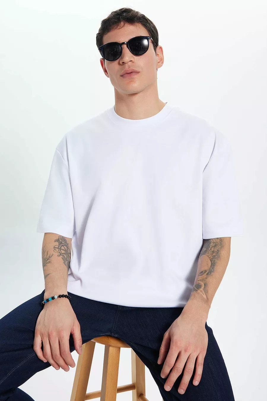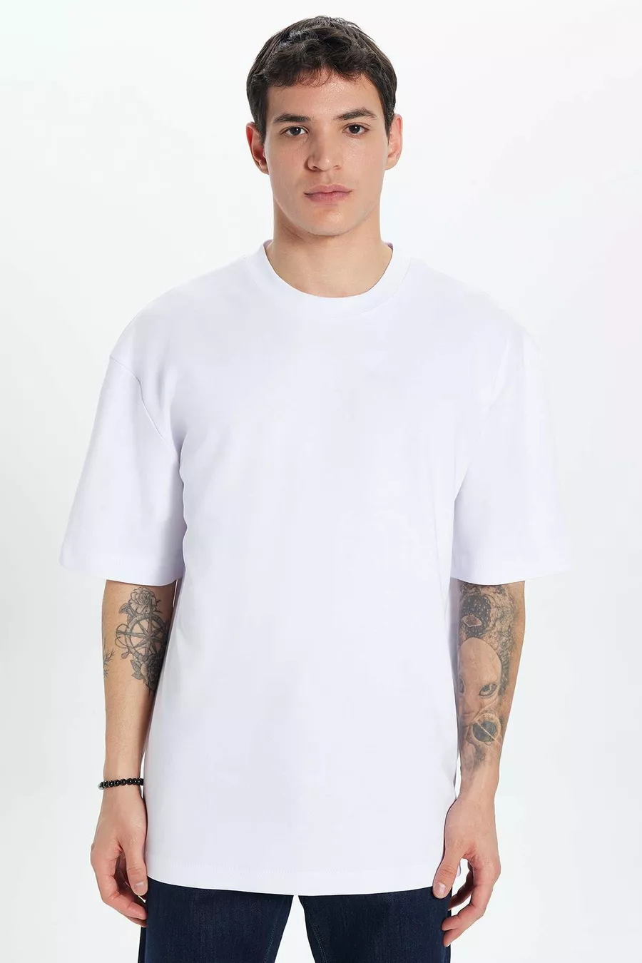Unisex Oversized Losse Pasvorm % Katoen Zacht Voelbaar Basic Ronde Hals Wit T-shirt