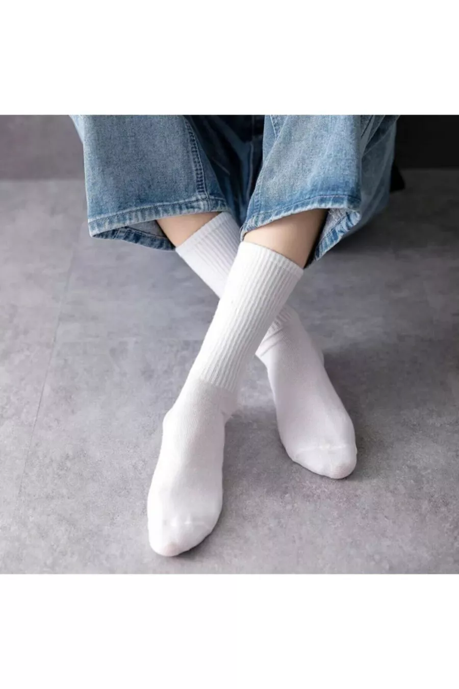Unisex Witte College Sokken Zonder Patroon 6 Paar