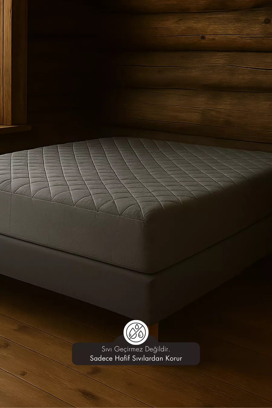 Verstevigde katoenen matrasbeschermer met full-hoge rand, grijs