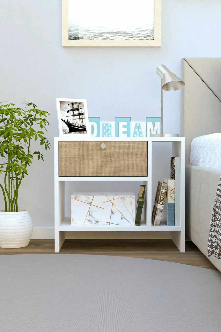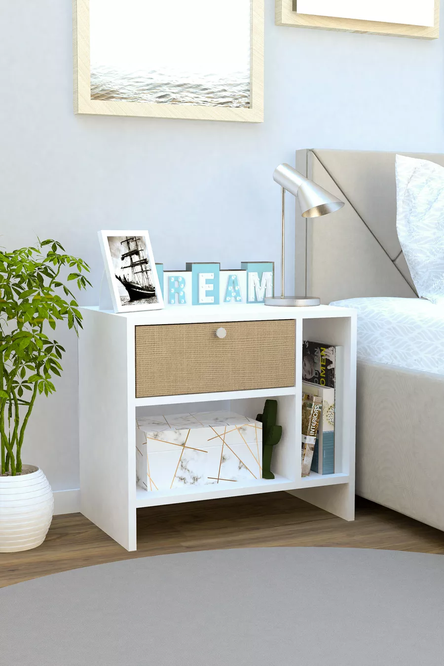 Materiaal: Suntalam Kleur: Wit Garantie: 2 jaar Aantal laden: 1 Hoogte: 54 cm Breedte: 54 cm Diepte: 36 cm Stijl: Scandinavisch Thema / Stijl: Scandinavisch Land van herkomst: TR