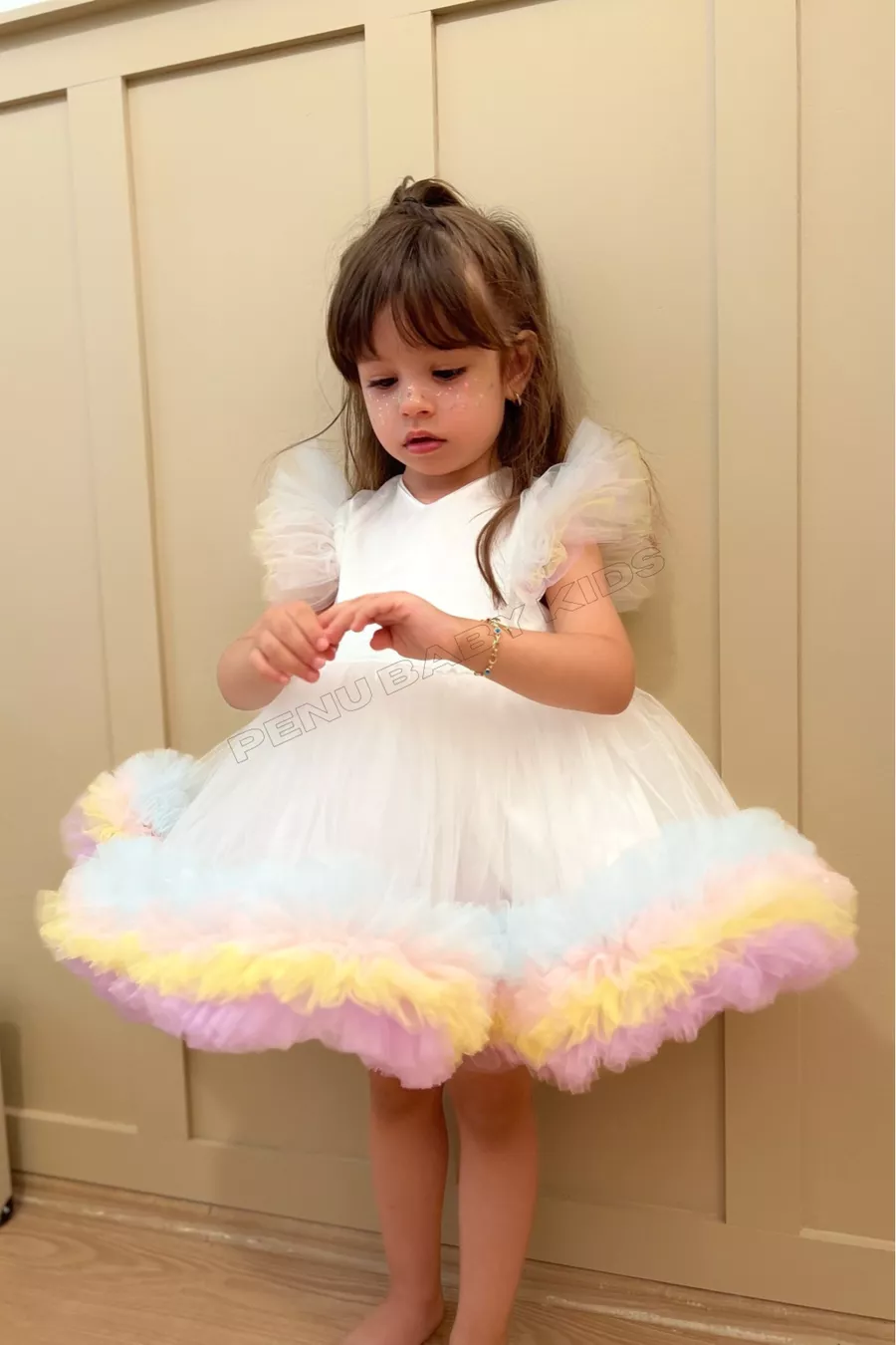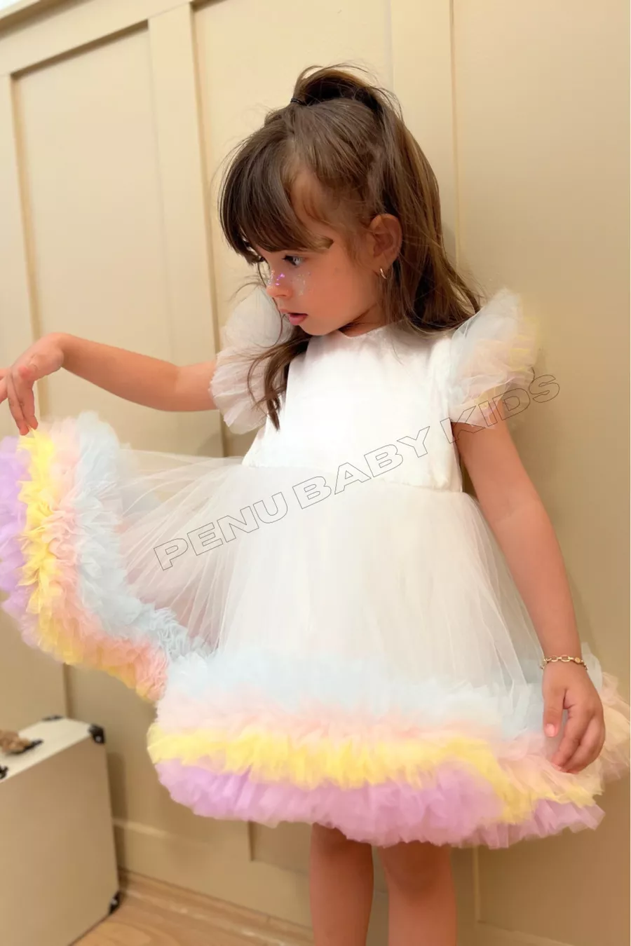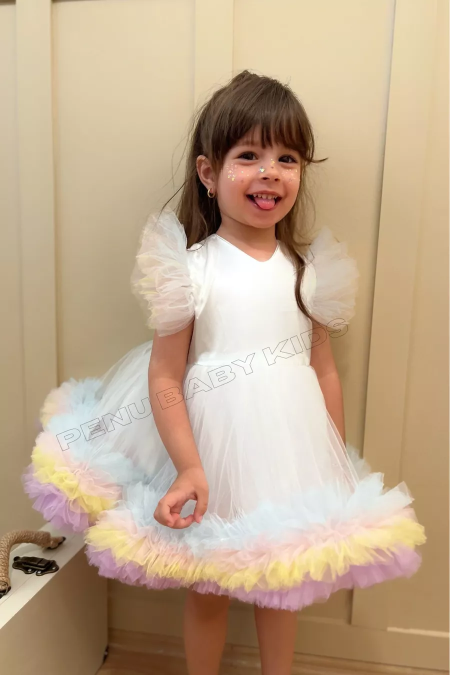 Witte Carnaval Gedetailleerde Korte Mouwen Babykleertje voor Meisjes