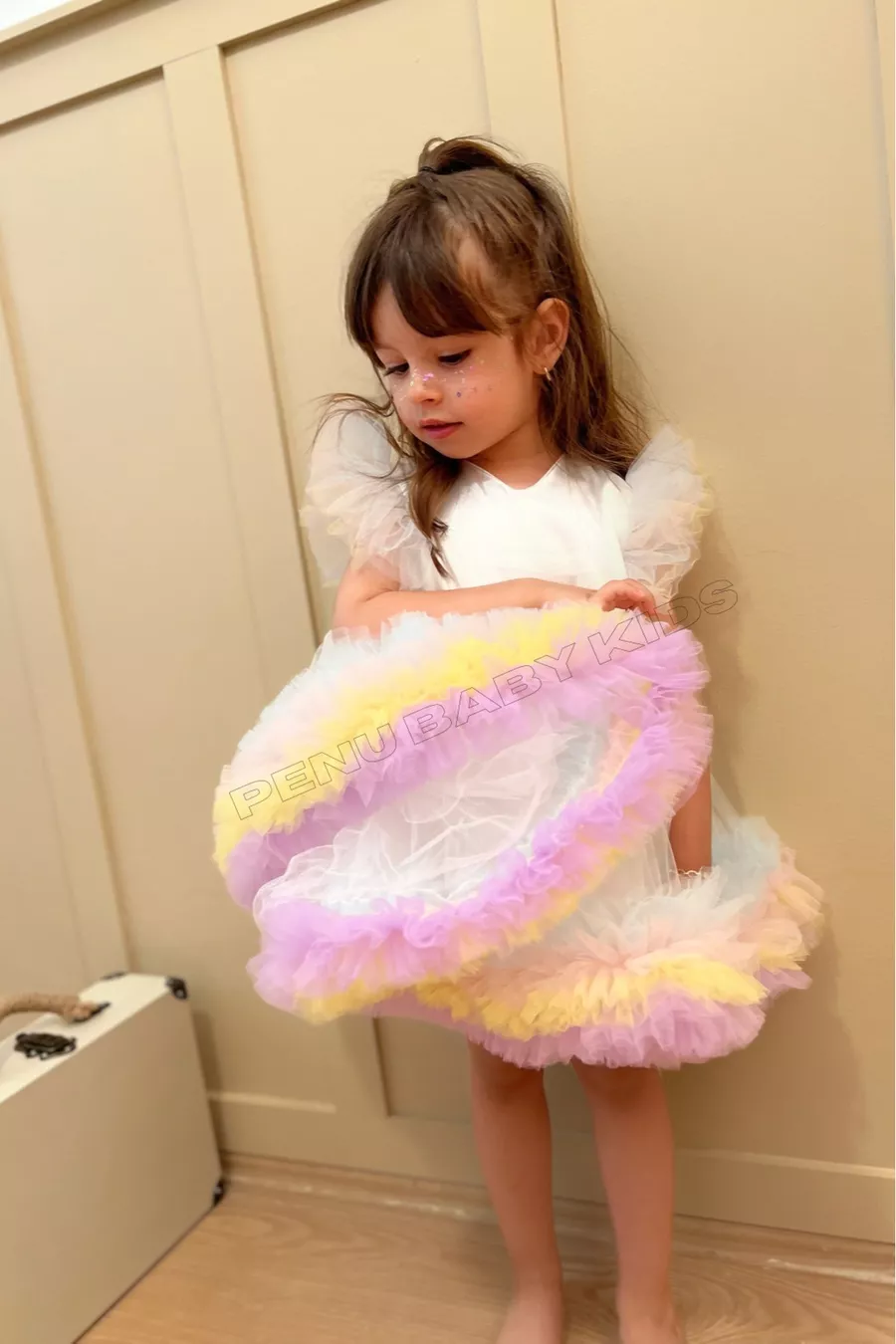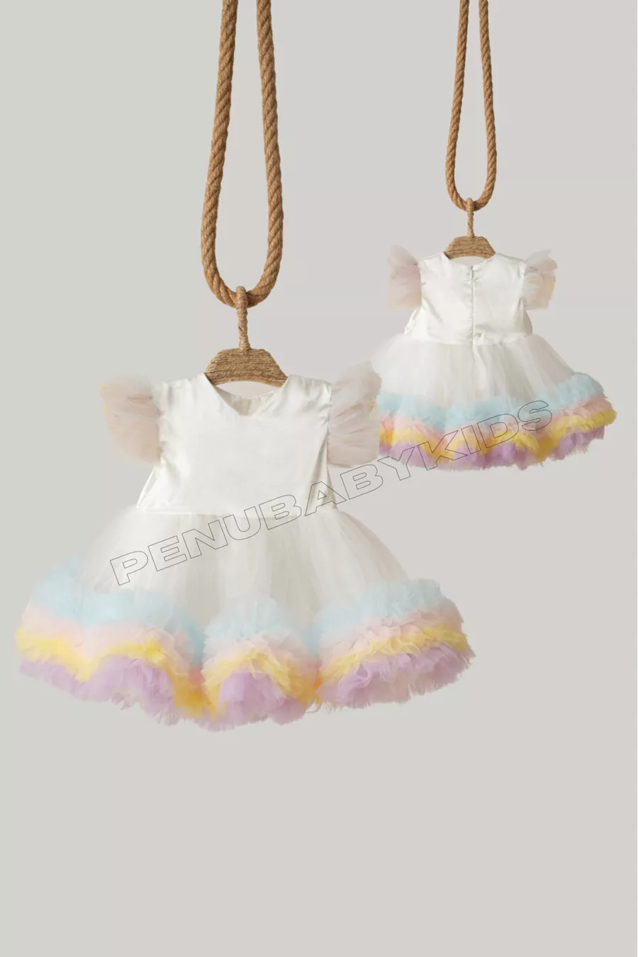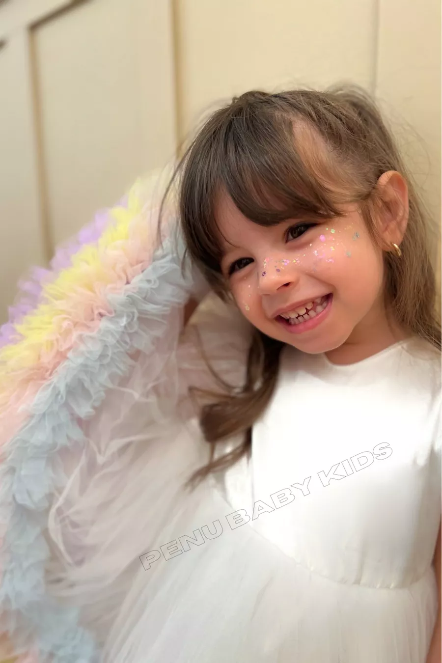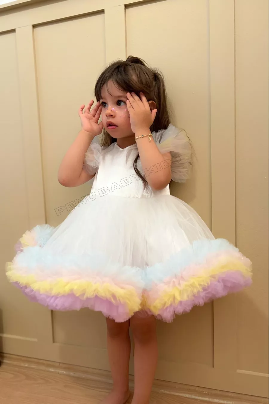 Witte Carnaval Gedetailleerde Korte Mouwen Babykleertje voor Meisjes