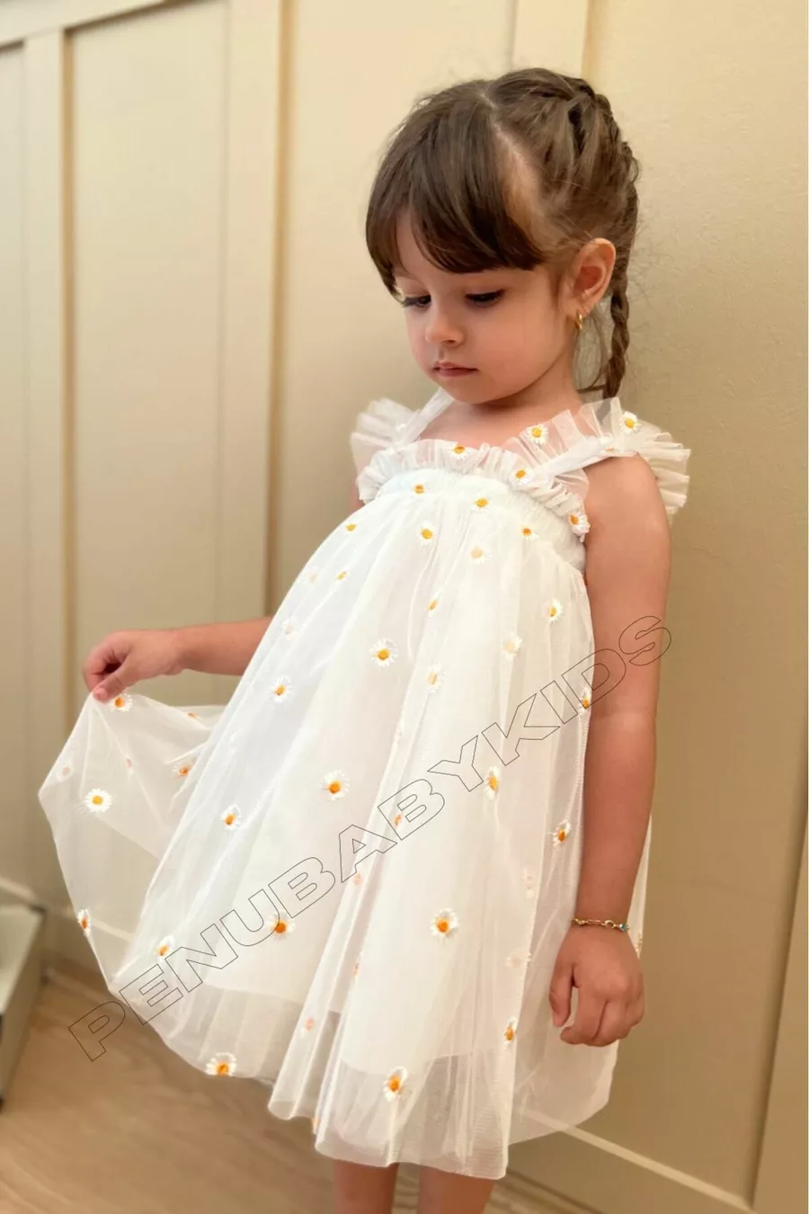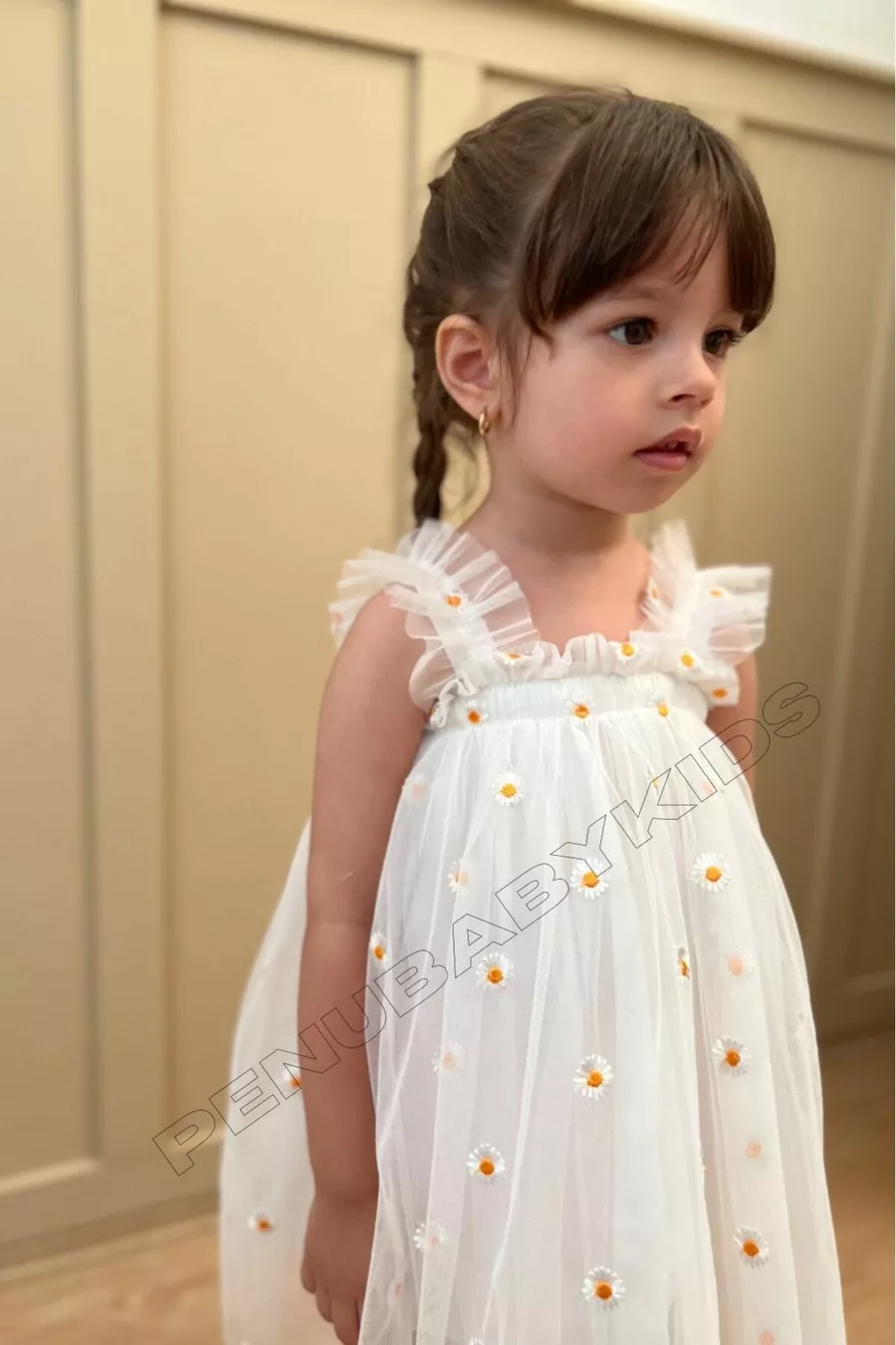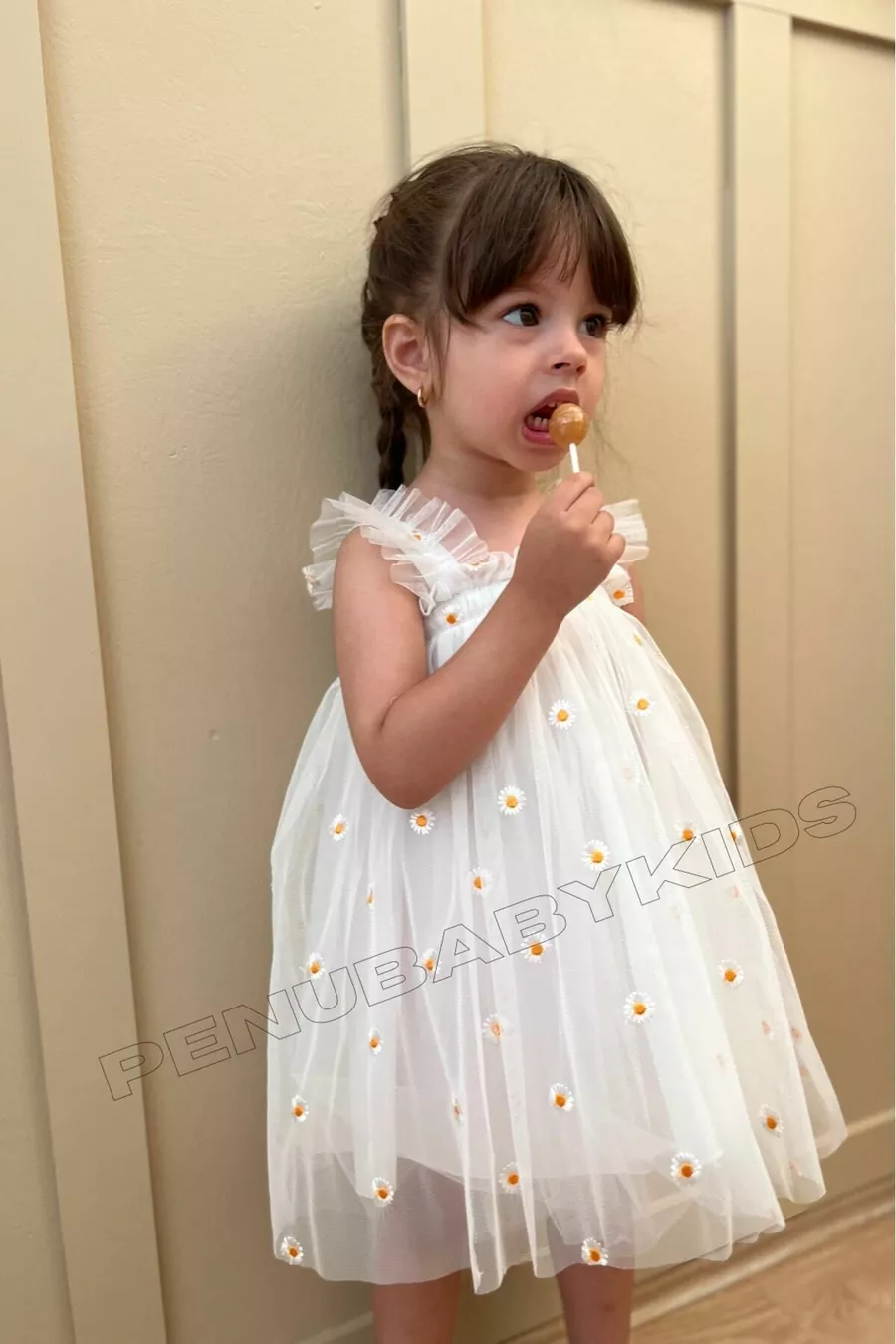 Witte Geborduurde Madeliefjesslinger Jurk voor Baby- en Meisjes - Elisa