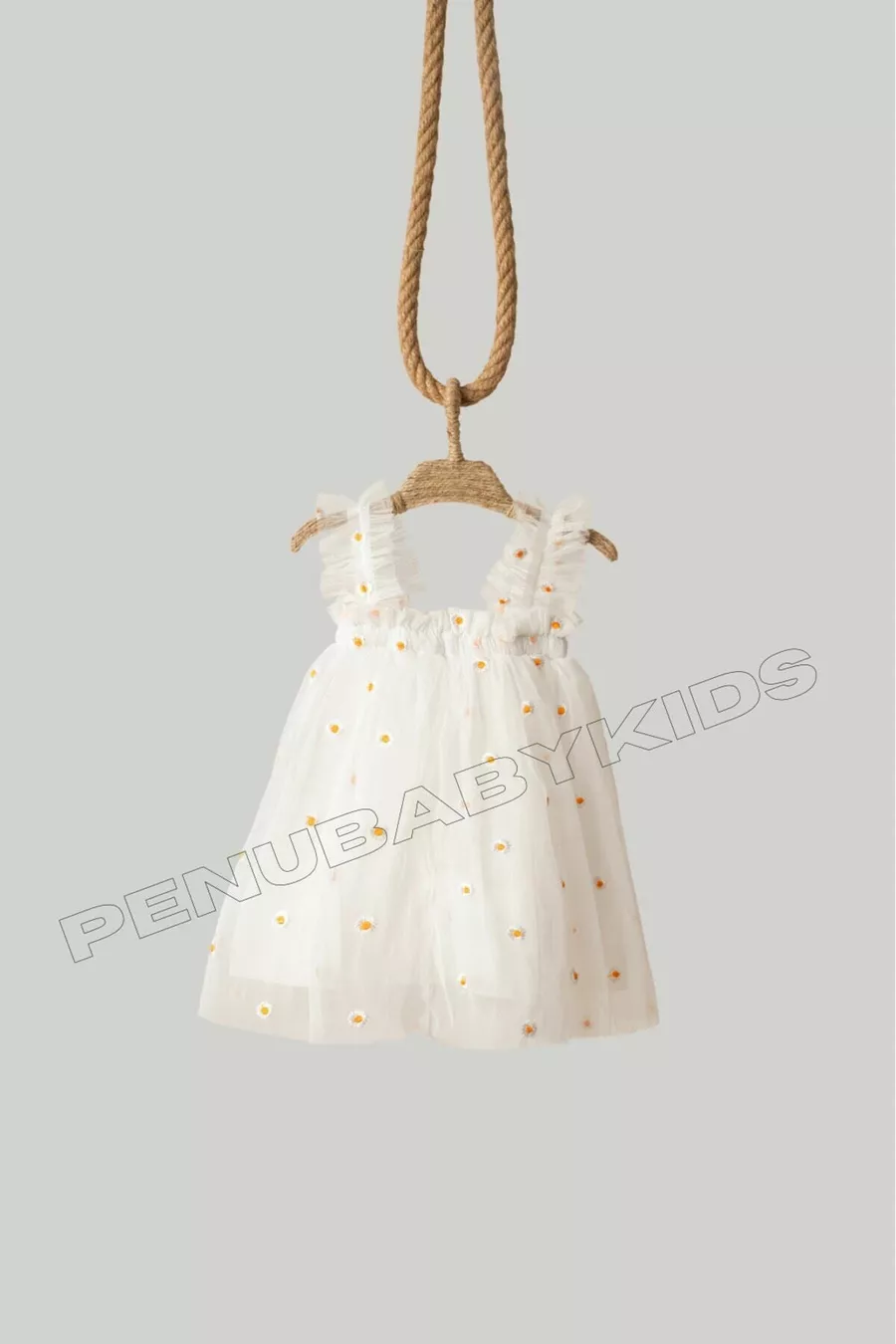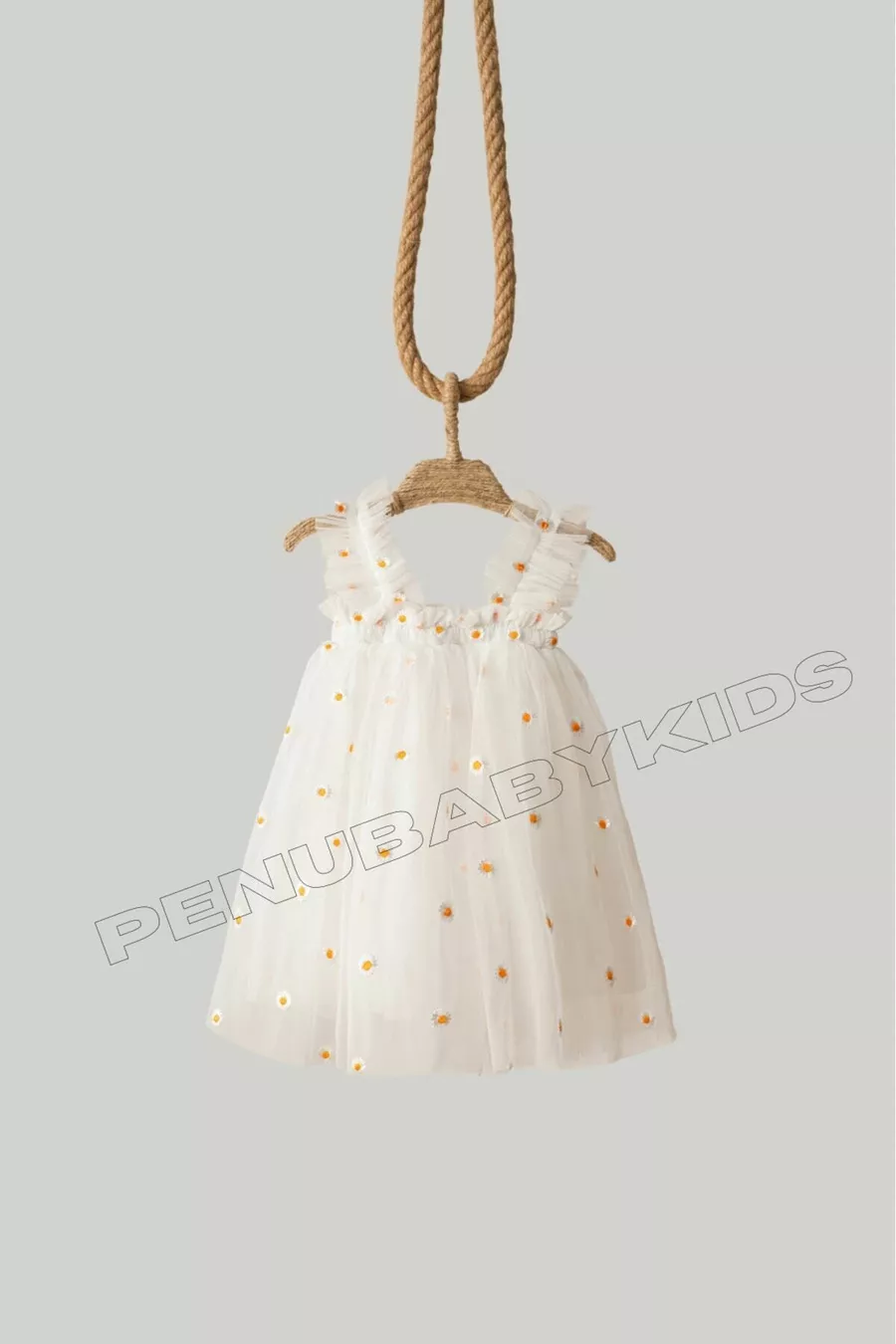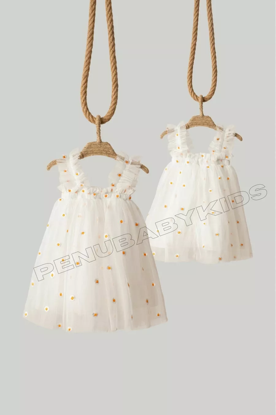 Witte Geborduurde Madeliefjesslinger Jurk voor Baby- en Meisjes - Elisa