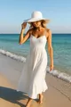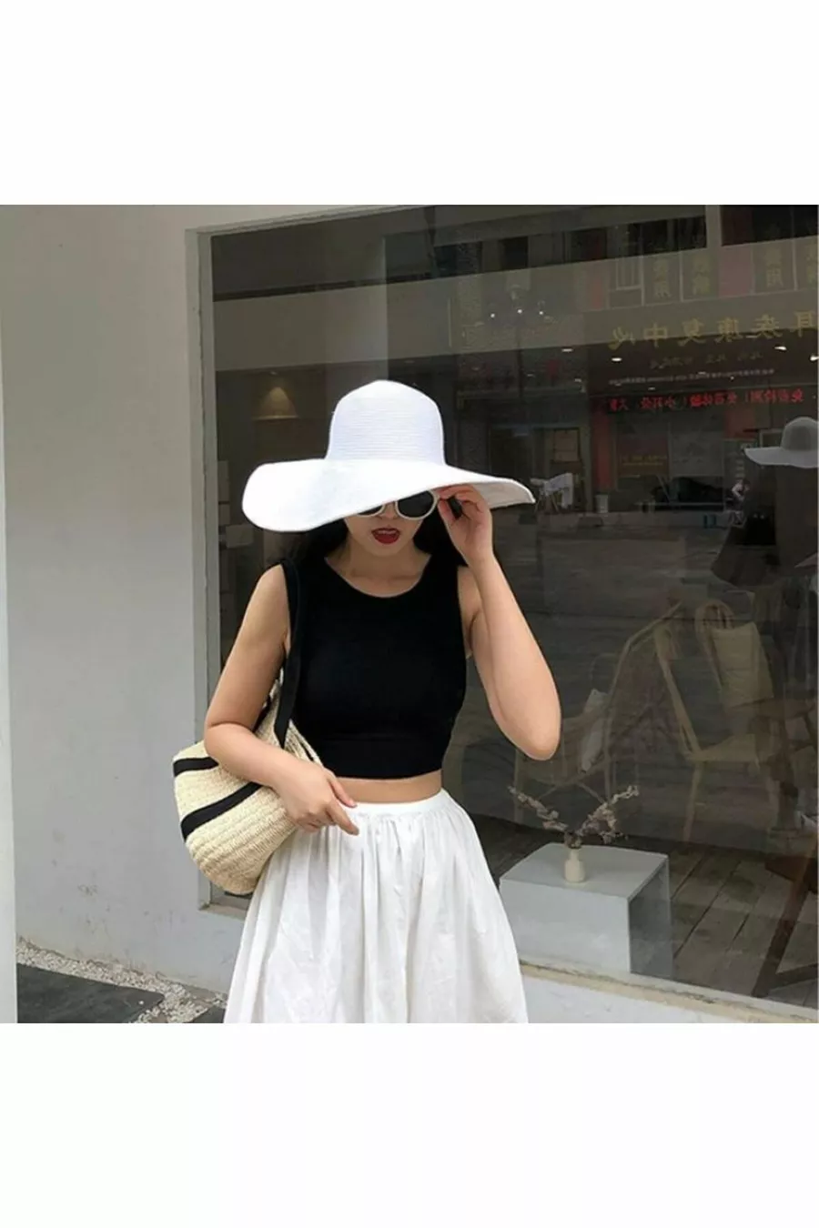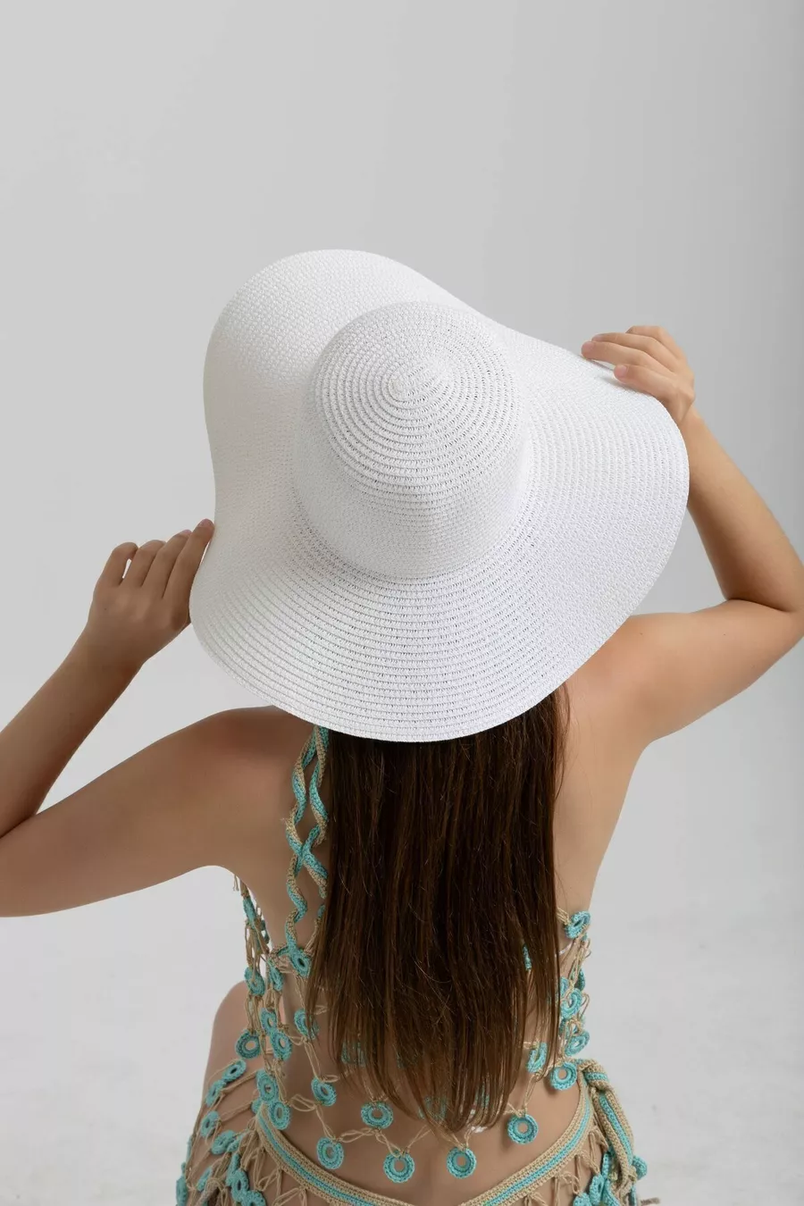Witte Gebreide Hoed met Brede Rand, Modieus en Functioneel, Zonnebescherming