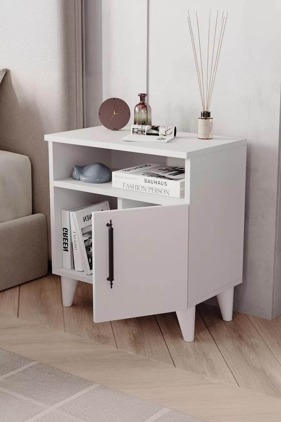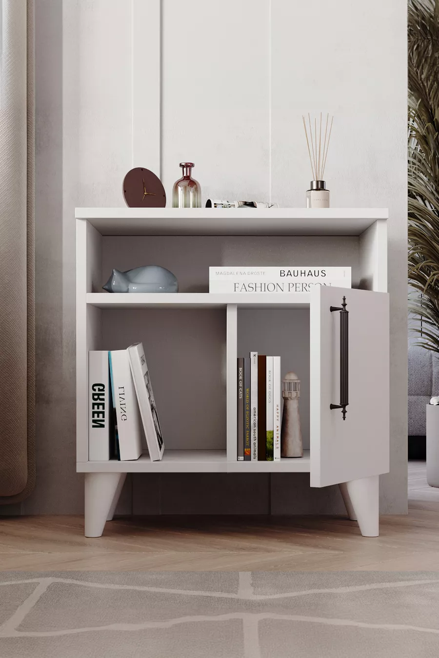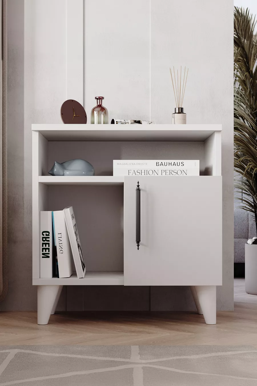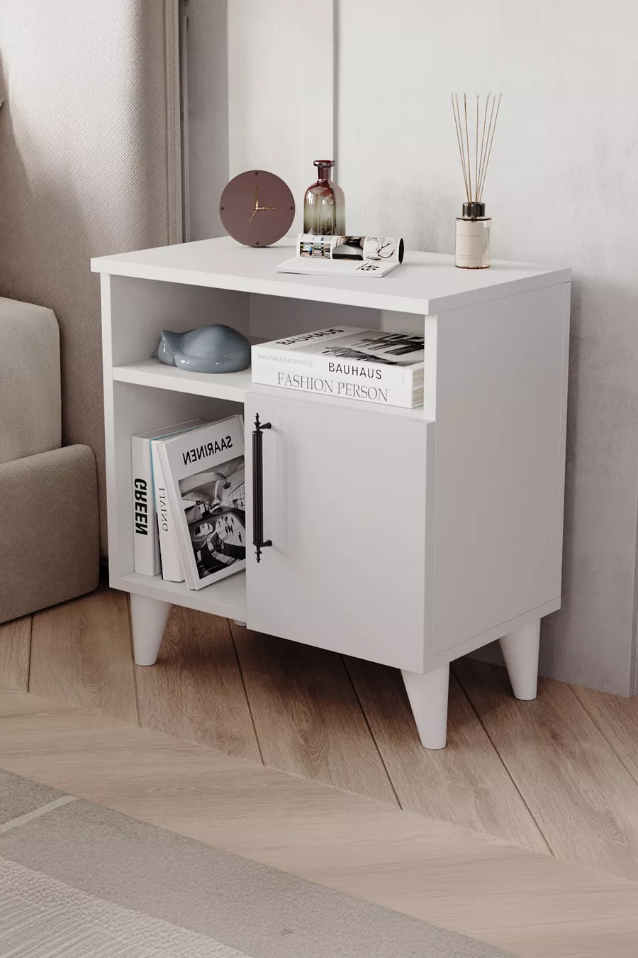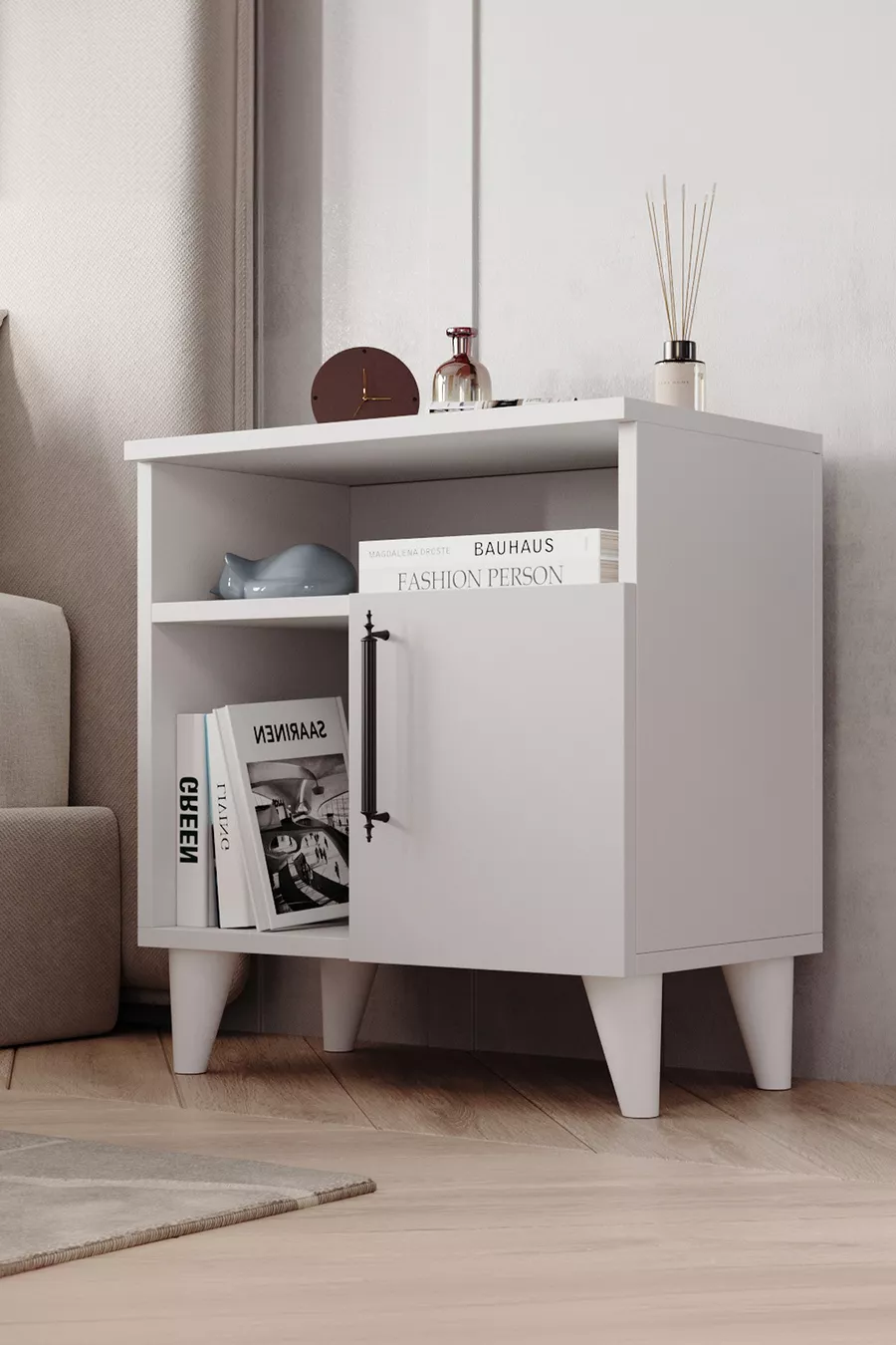 Materiaal: Suntalem Kleur: Wit Garantietermijn: 2 jaar Aantal laden: Open plank Hoogte: 57 cm Breedte: 51 cm Diepte: 32 cm Stijl: Retro Thema / Stijl: Scandinavisch Oorsprong: TR Kenmerk: Met deksel
