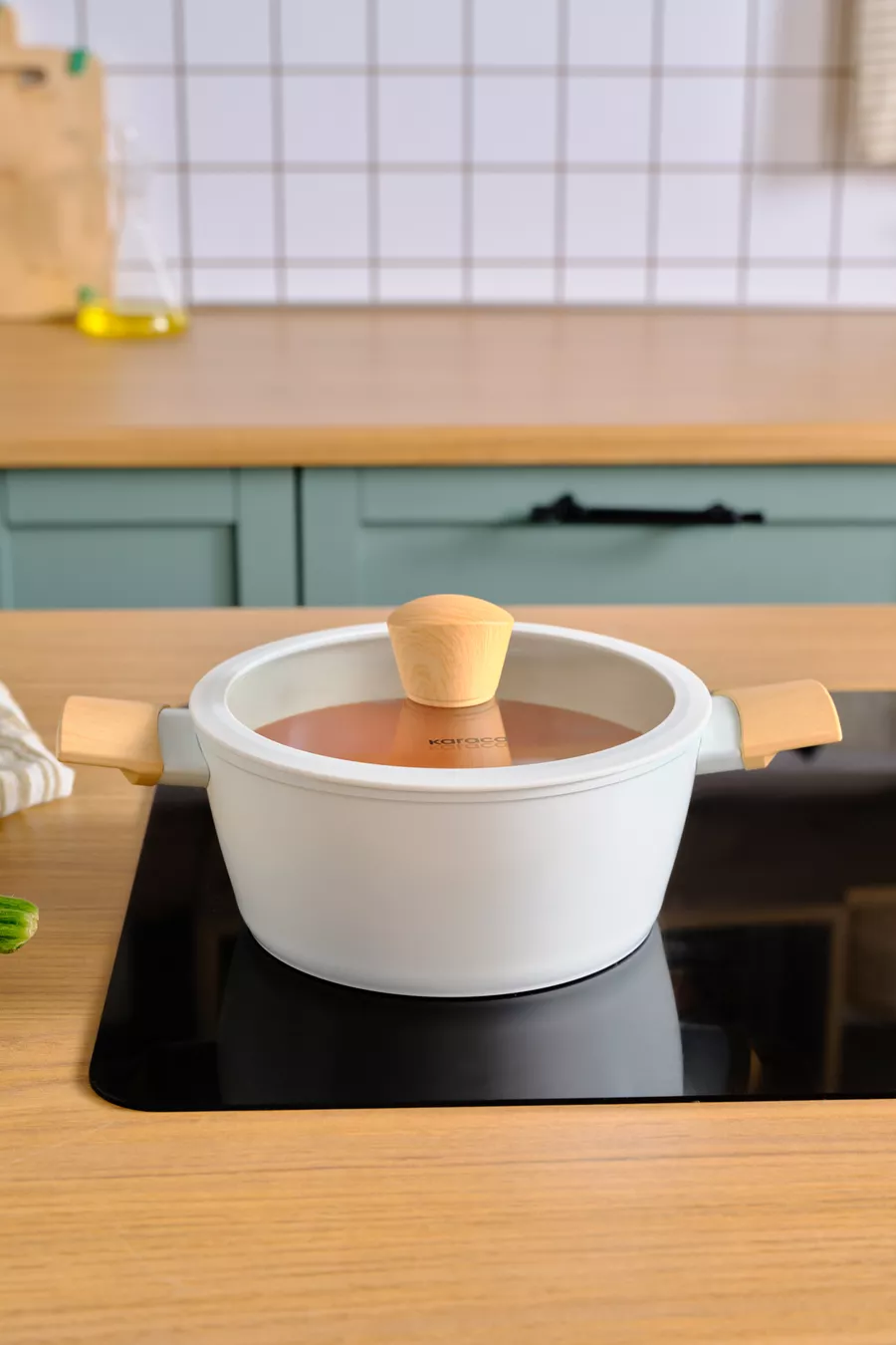 Kleur: Beige Maat/Formaat: 20 cm Inhoud: 2,3 L Kenmerk: Geschikt voor inductiekookplaat Buitenmateriaal: Swiss coating Binnenmateriaal: Swiss coating Aantal onderdelen: 2 Herkomstland: CN Materiaal: test