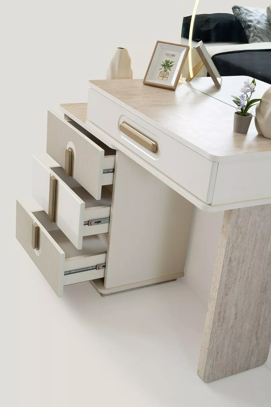 Kleur: Veelkleurig Garantieperiode: 2 jaar Materiaal: MDF Hoogte: 90 cm Breedte: 120 cm Diepte: 43 cm Aantal laden: 4 Producteigenschap: Met spiegel Stijl: Modern Thema / Stijl: Modern Land van herkomst: TR