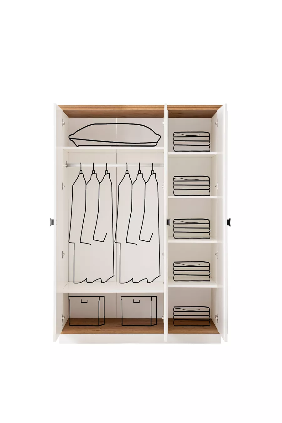 Setinhoud: Bed + 2 nachtkastjes + ladekast + kledingkast