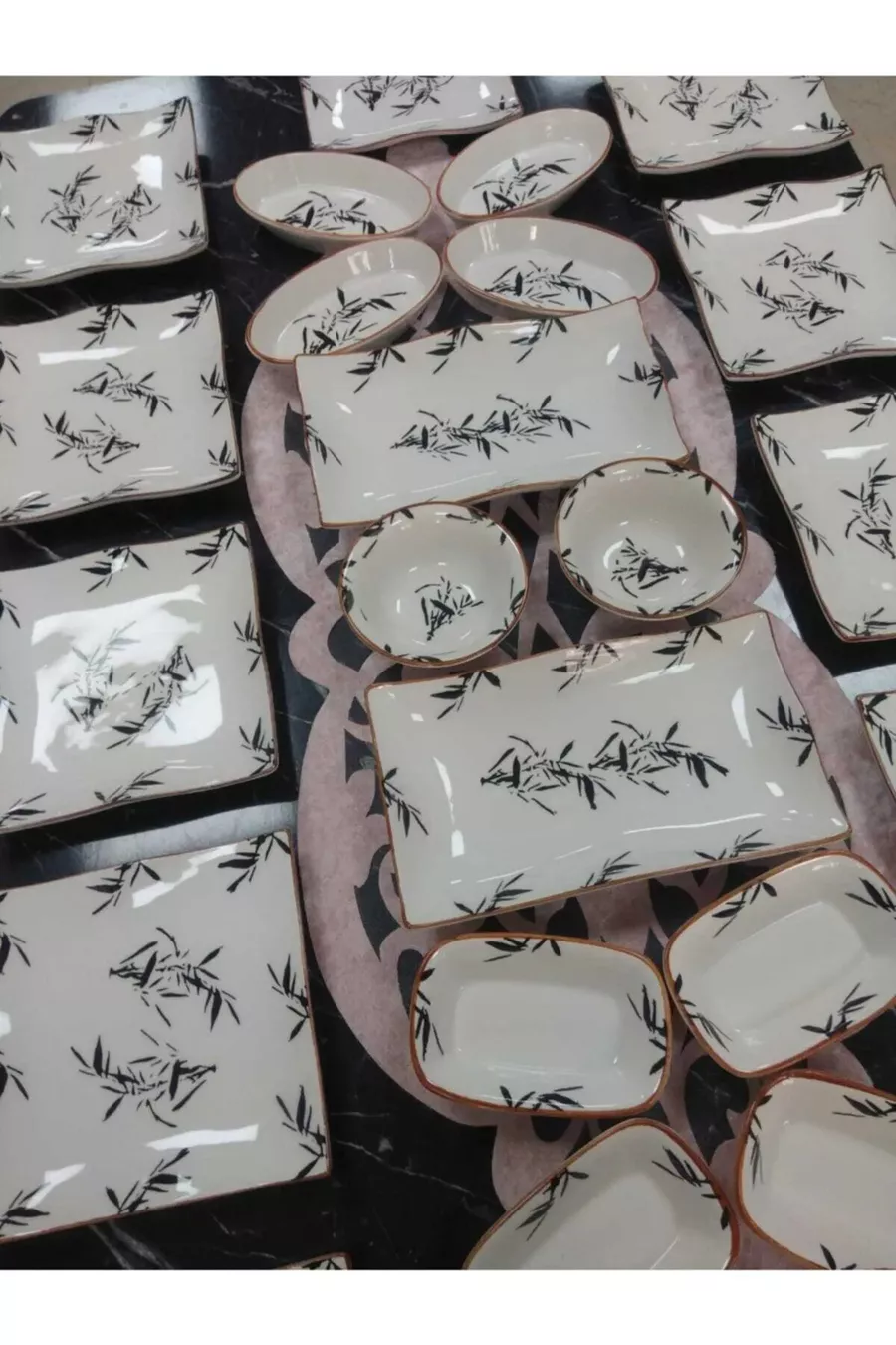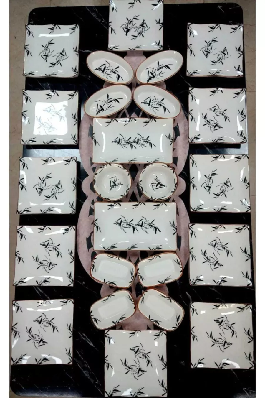Aantal Personen: 12 personen Materiaal: Keramiek Kleur: Zwart Aantal Stukken: 24 Kenmerk: Geschikt voor magnetron Thema / Stijl: Met bloemen Vorm: Rechthoekig