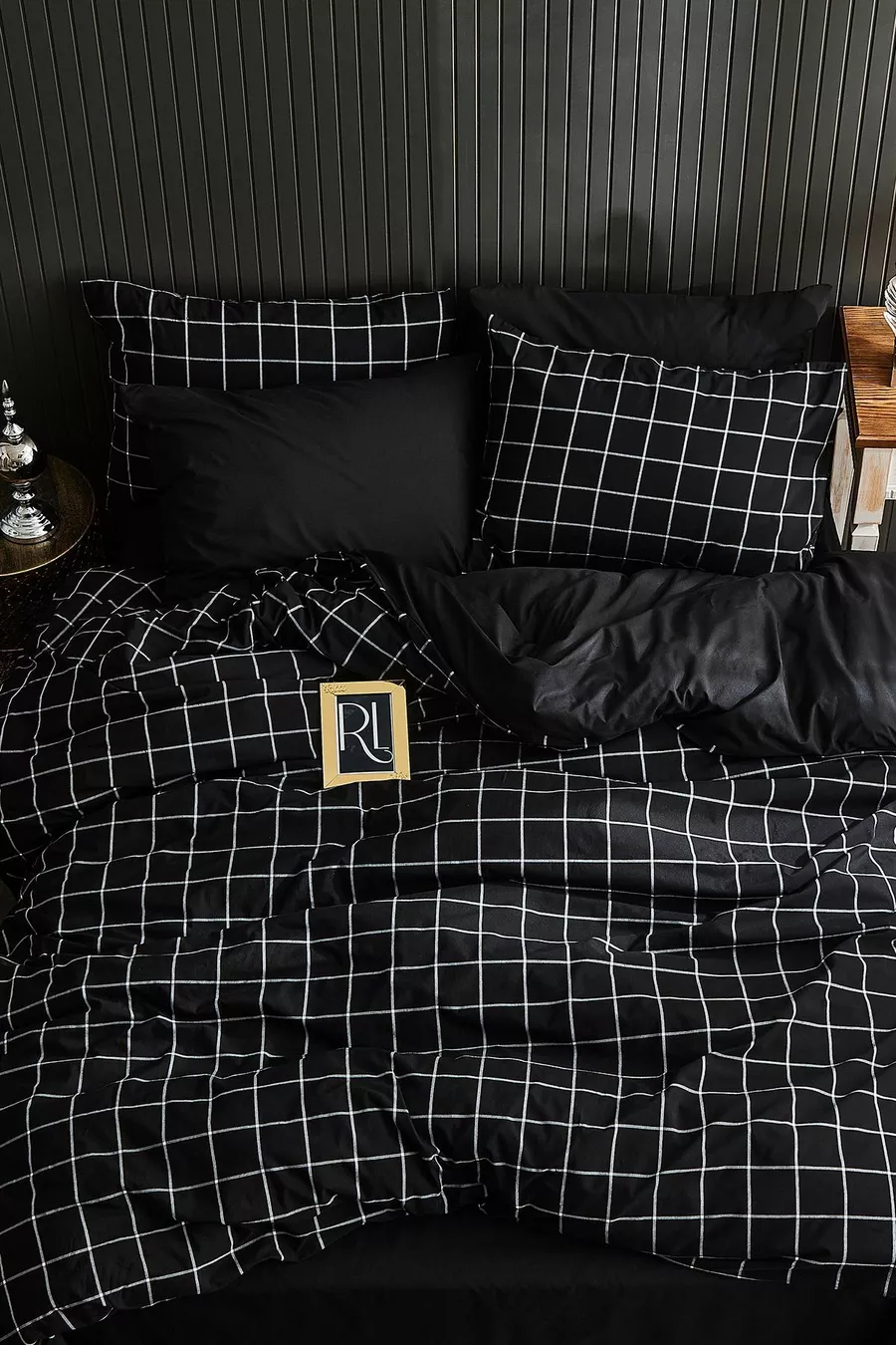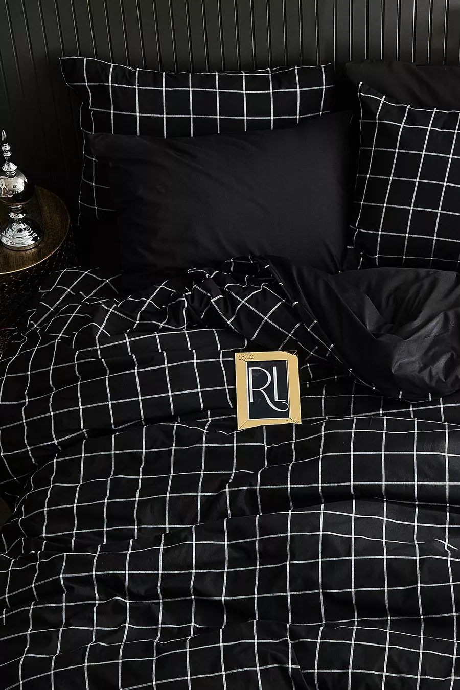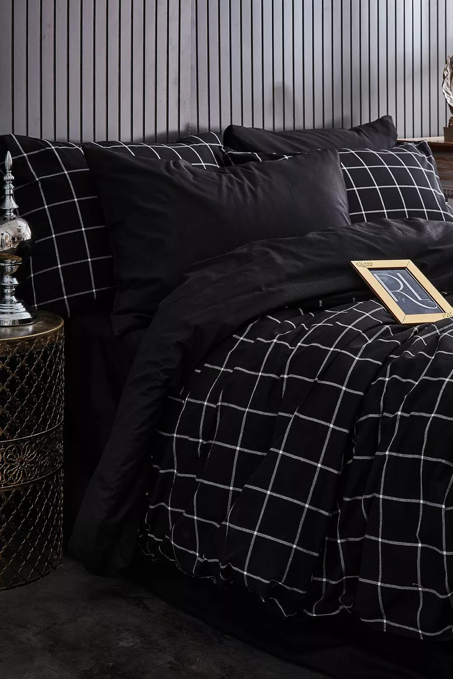 Materiaal: Katoen Inhoud van het pakket: Set van 3 Afmeting: 200 x 220 Soort laken: Zonder laken Kleur: Zwart Patroon: Geometrisch Kenmerk: Ademend Wasinstructie: type 0 Doosstatus: Geen doos