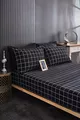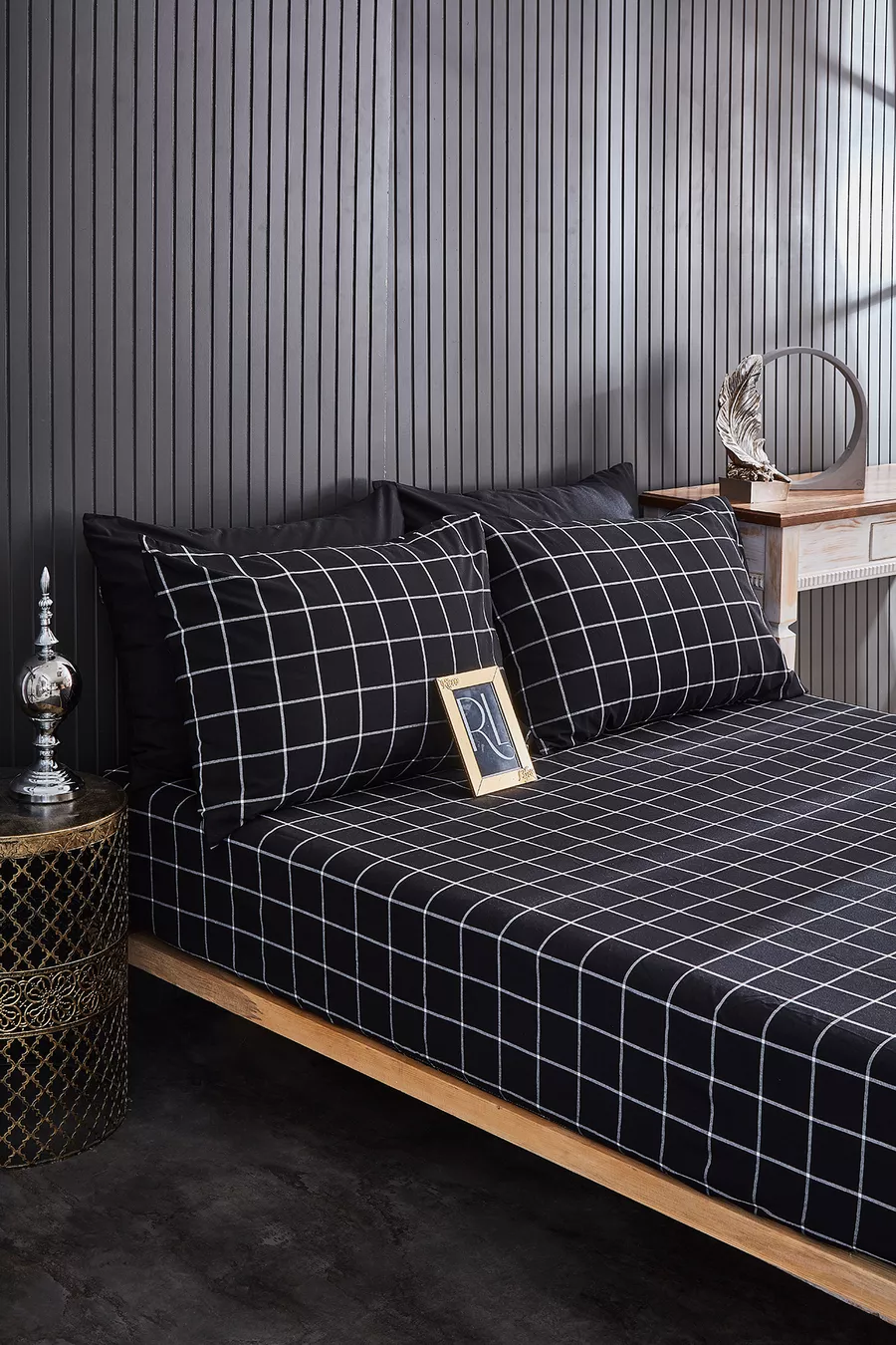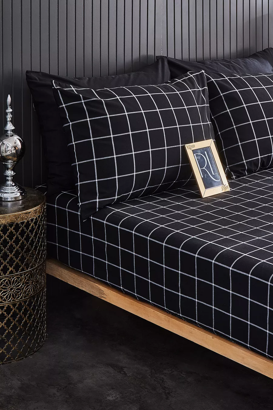 Zwart Geruite Dubbel Elastisch Hoeslaken met 2 Kussenslopen