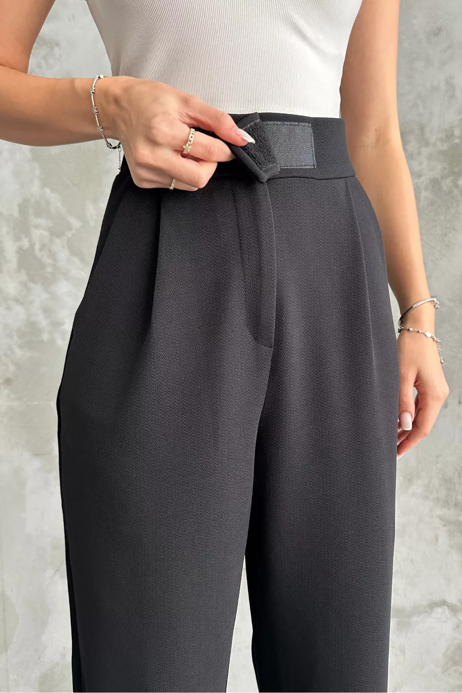 Zwarte dames palazzo broek met elastische taille en klittenbandsluiting