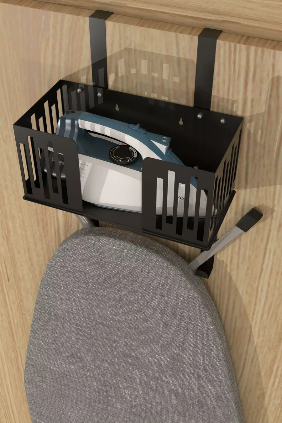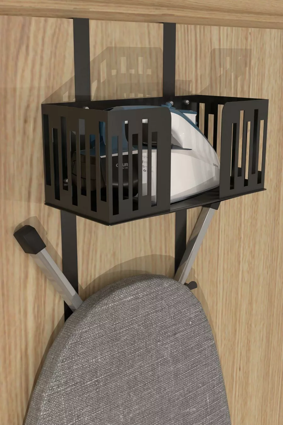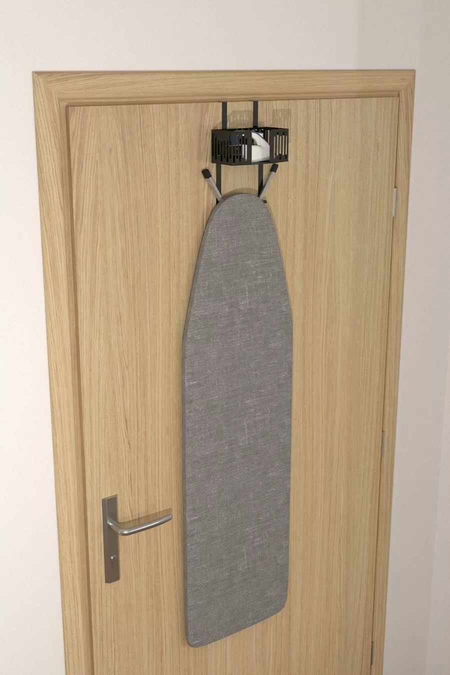 Zwarte deurzijde strijkijzer- en strijkplankhouder, organizer, strijkijzer- en strijkplankhaak S