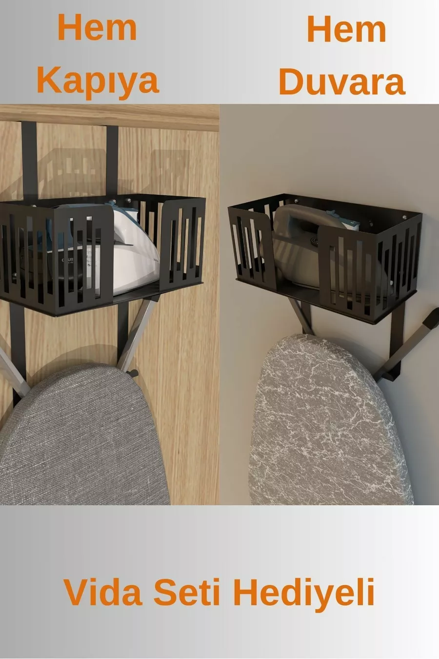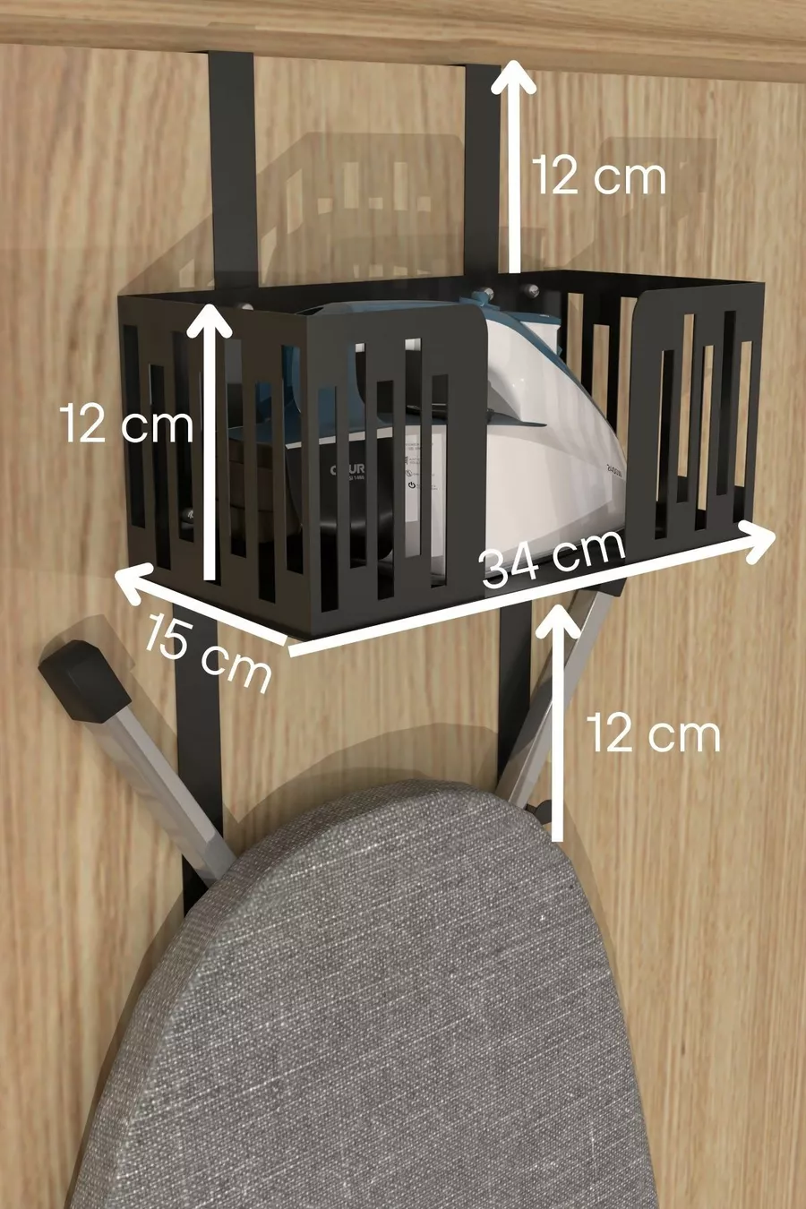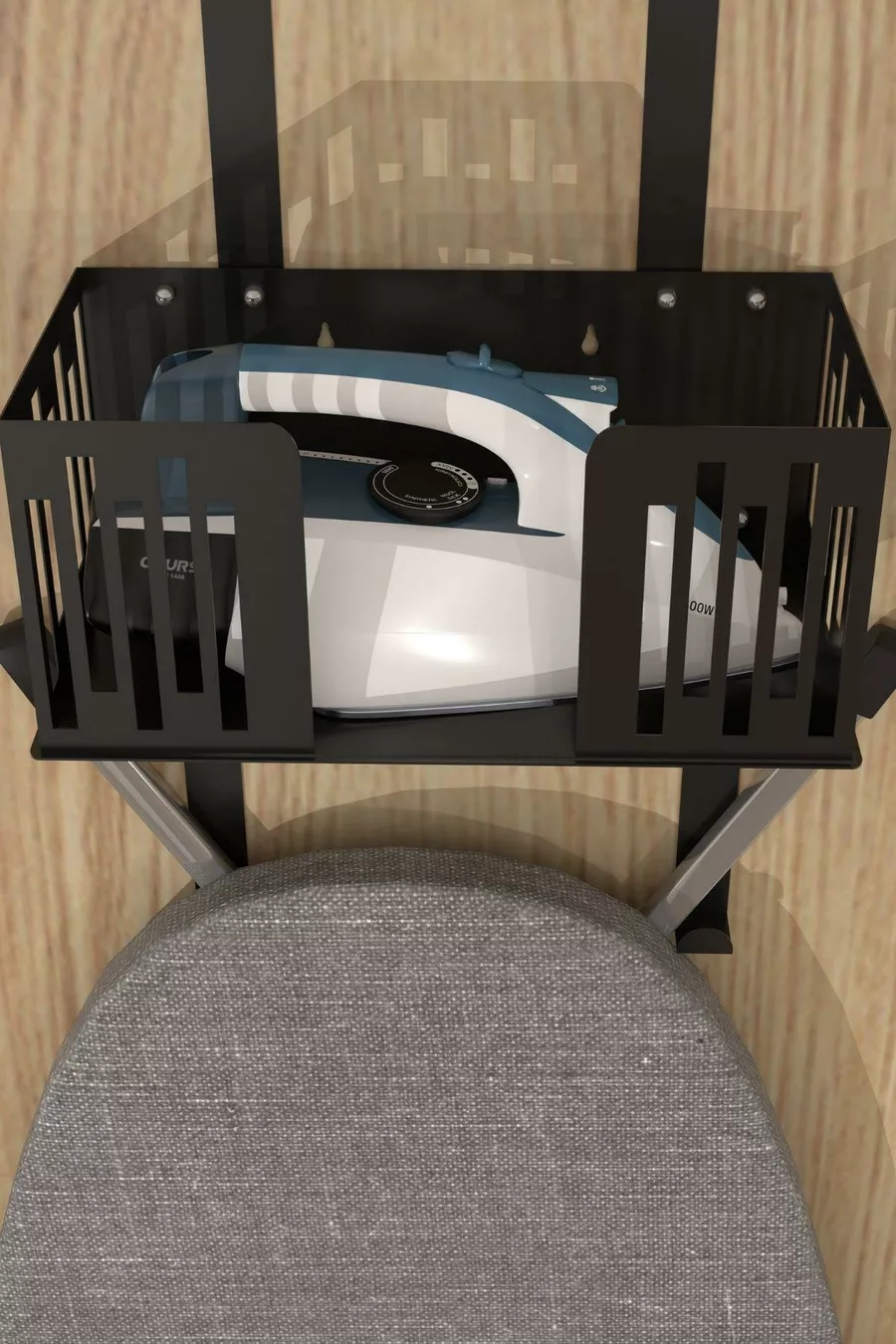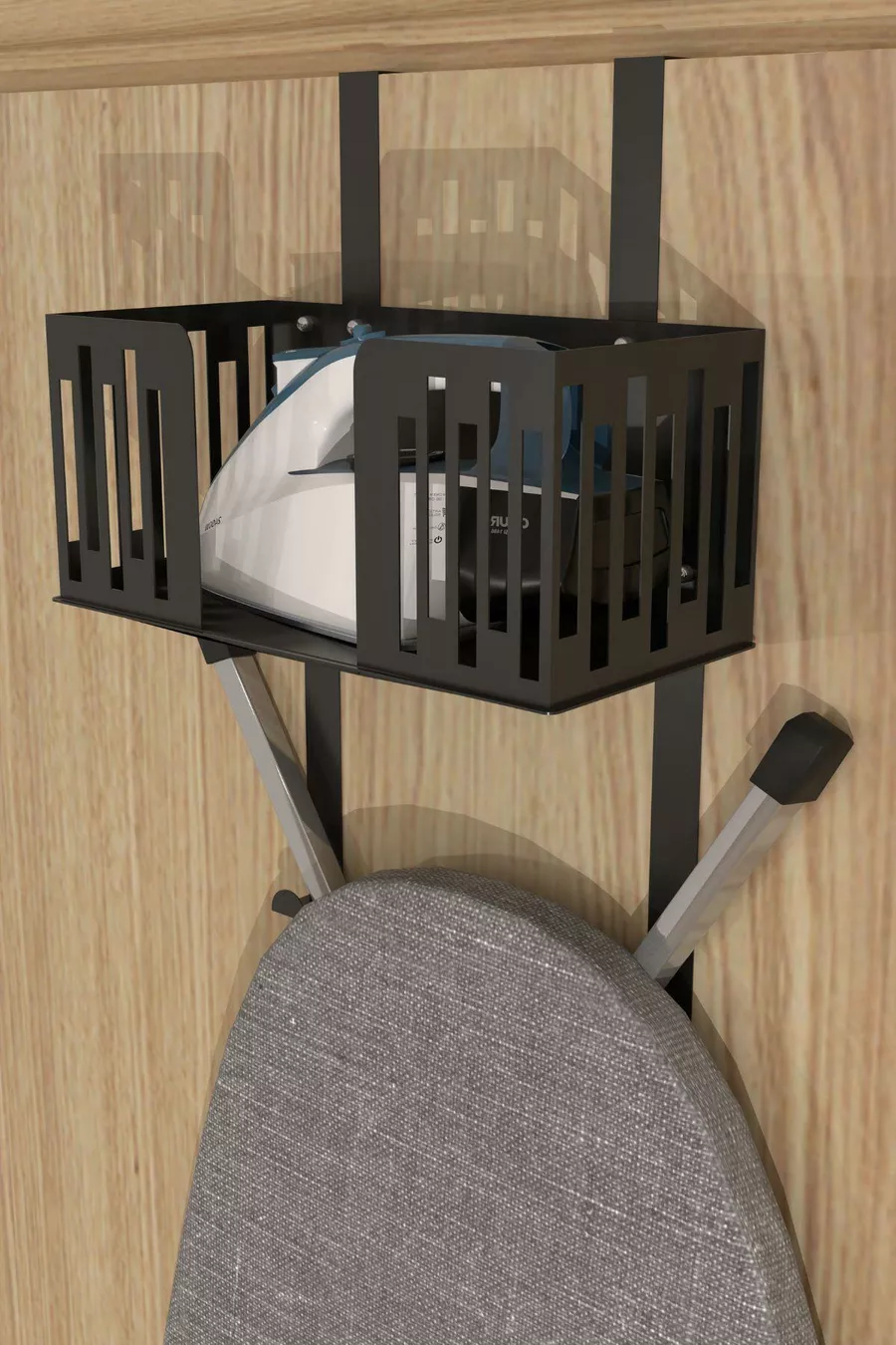 Zwarte deurzijde strijkijzer- en strijkplankhouder, organizer, strijkijzer- en strijkplankhaak S