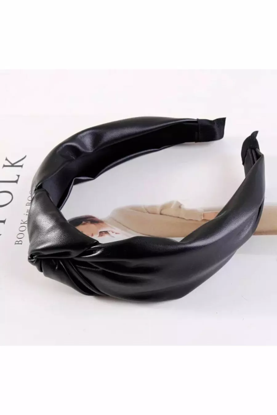 Zwarte kunstleren knoop hoofdband