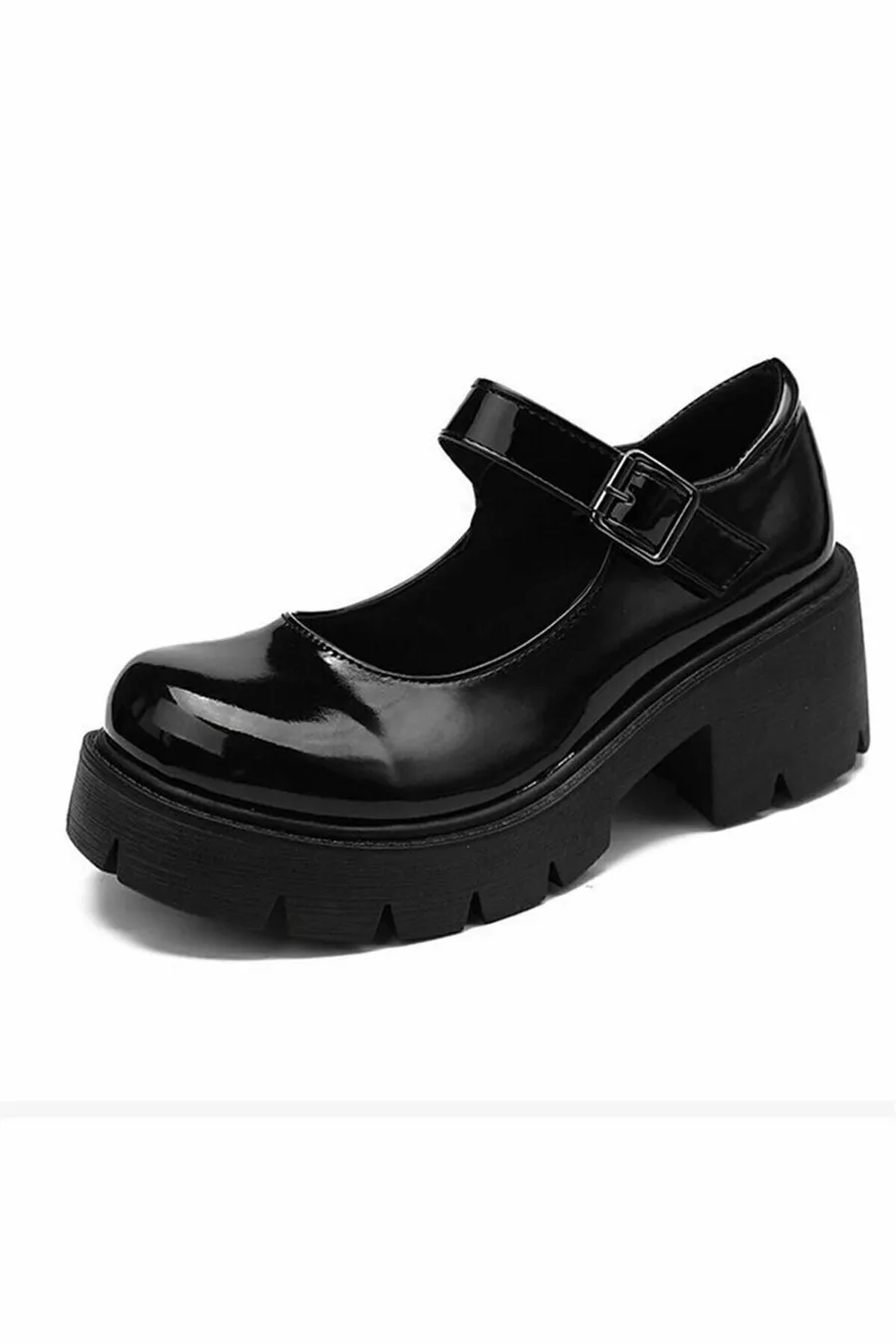 Zwarte Lakleren Harajuku Stijl Lolita Schoenen