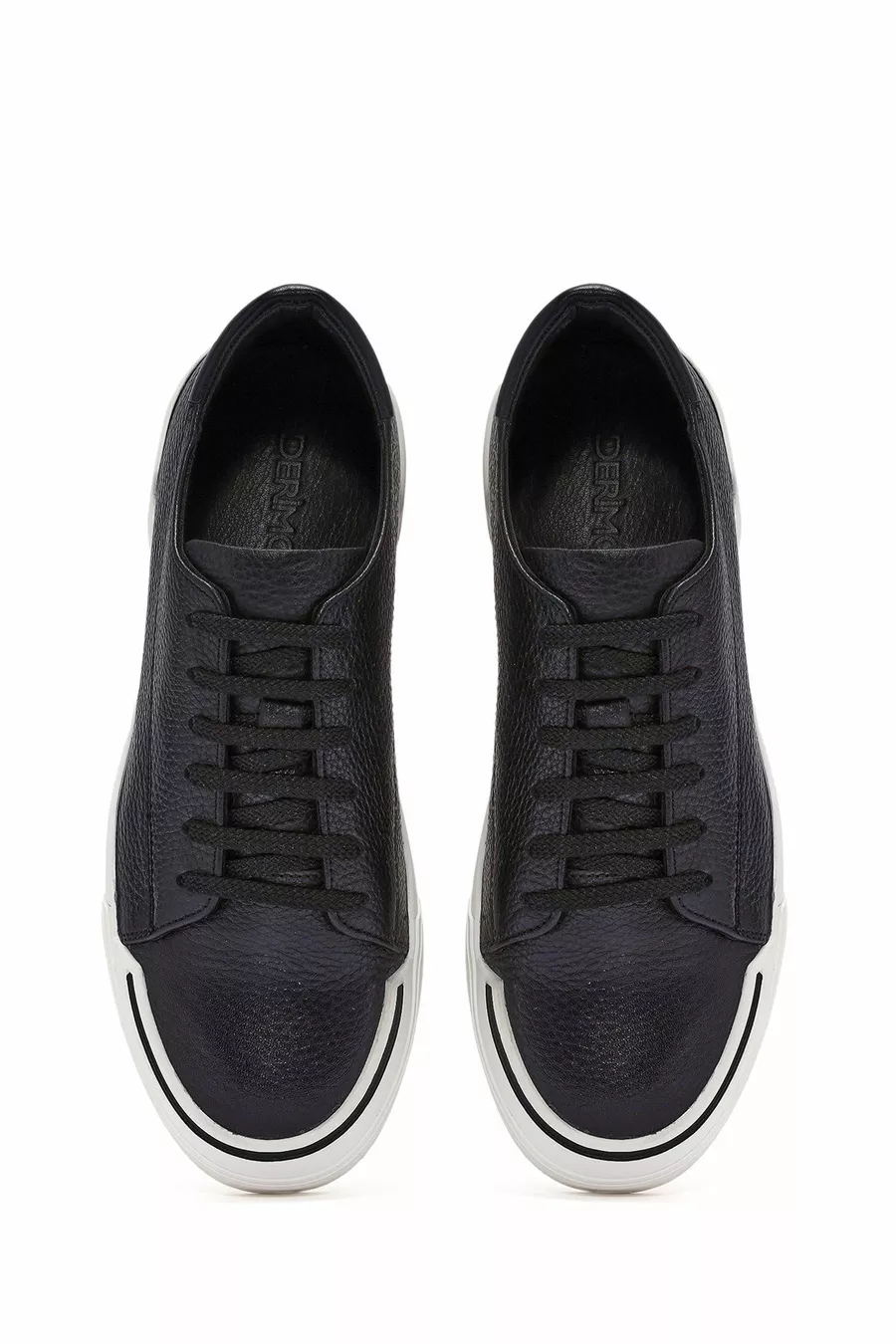 Zwarte leren sneakers met veters voor heren FT