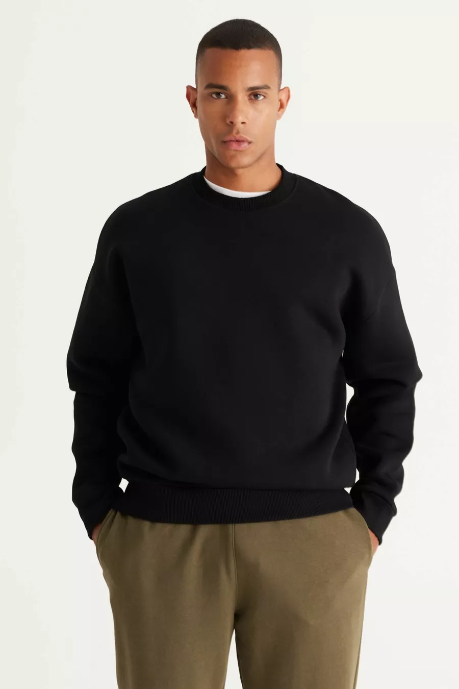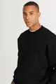 Zwarte oversized fit loose fit katoenen fleece aan de binnenkant van 3-draads sweatshirt met ronde hals voor heren