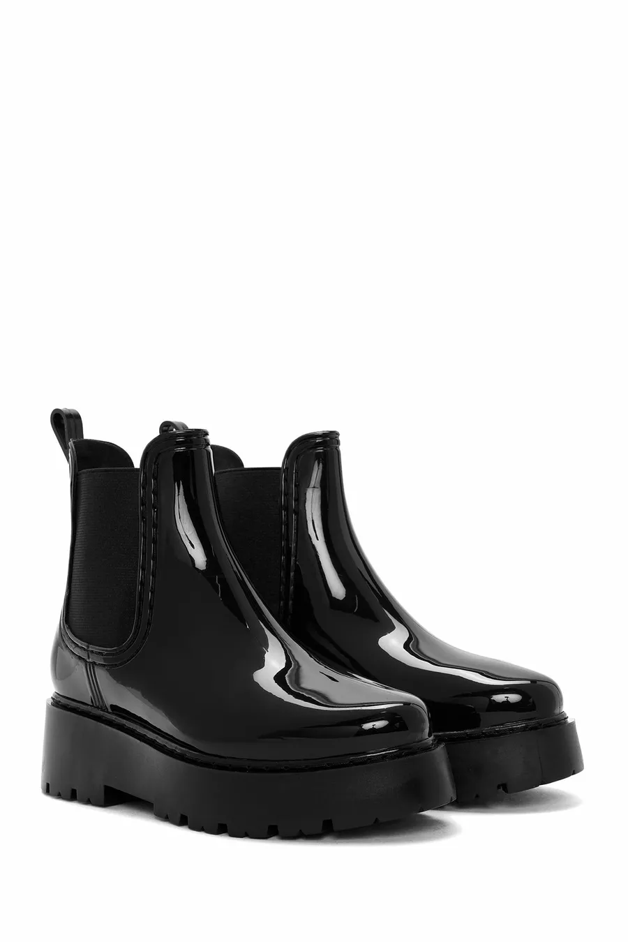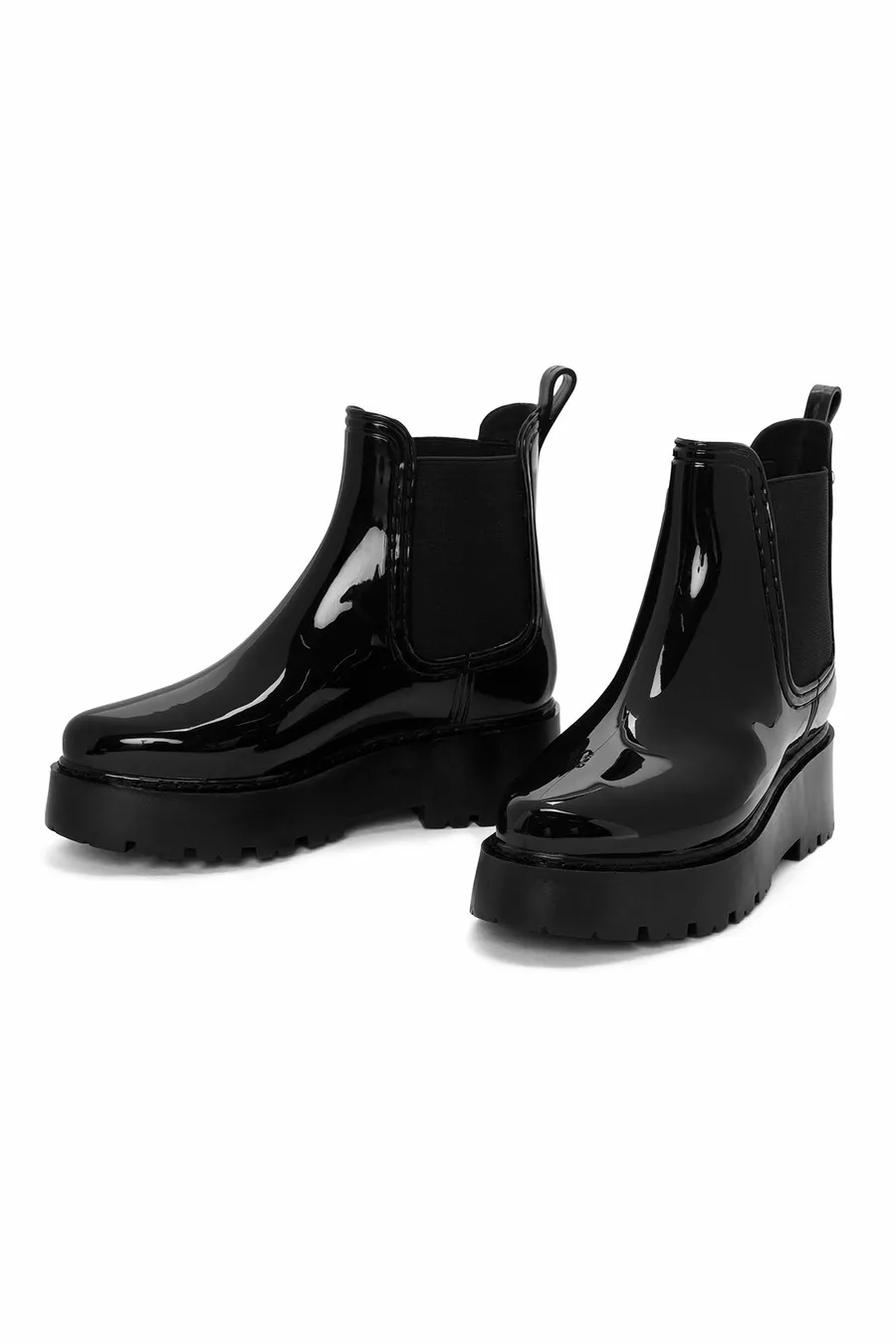 Zwarte regenlaarzen met dikke zool voor dames PV