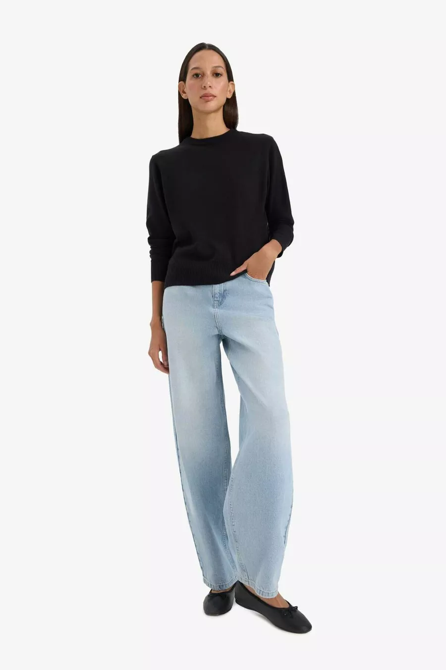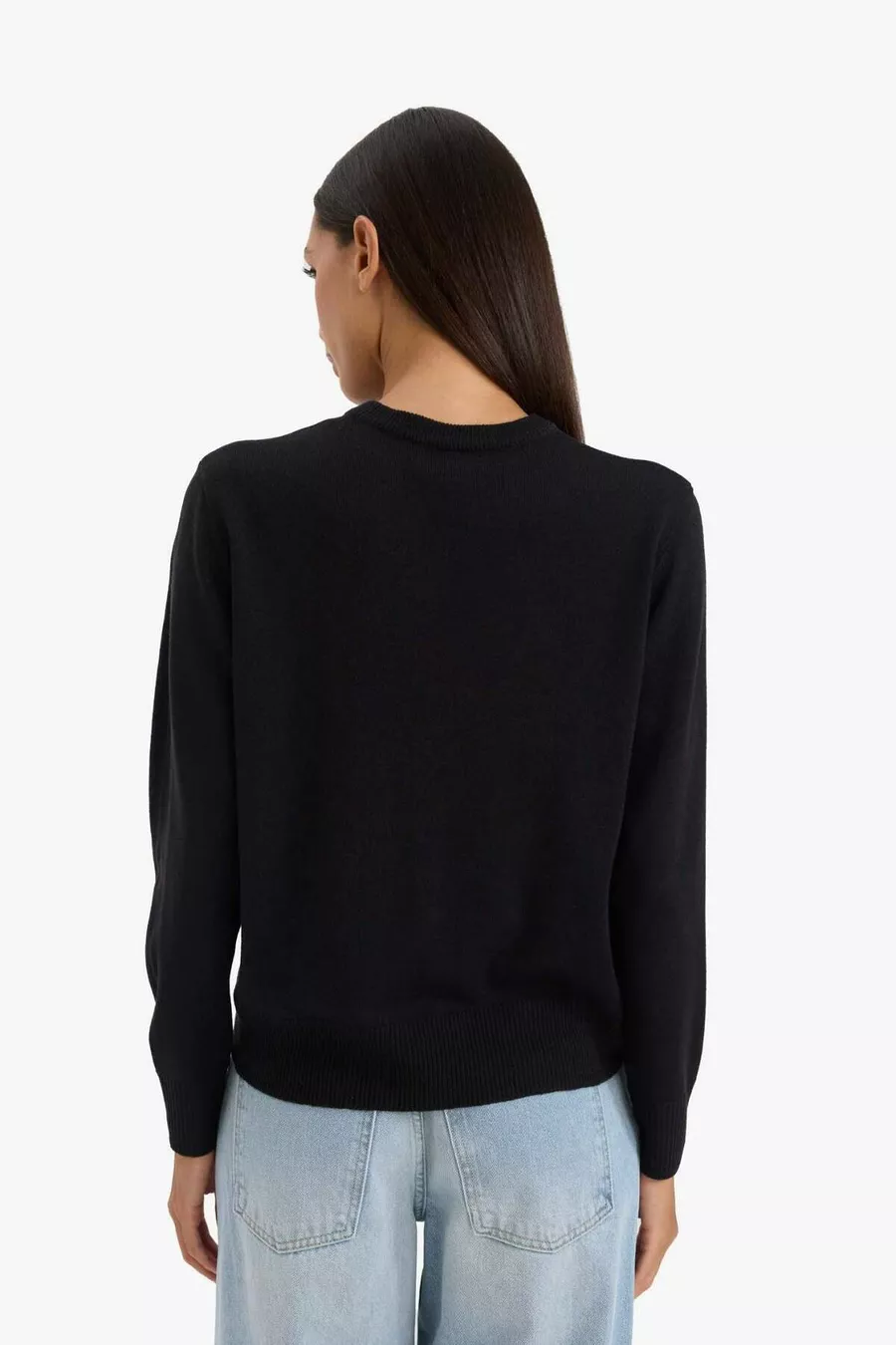 Zwarte Regular Fit Zachte Textuur Basic Rechte Trui met Ronde Hals WN