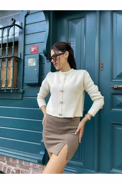 Cardigan d’hiver en laine avec boutons de poche