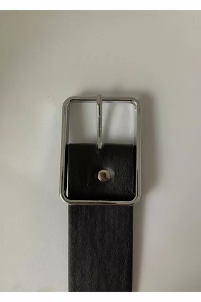 Ceinture à boucle argentée noire pour femme