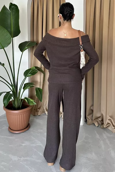 Ensemble bas haut en tricot noir oversize fendu détaillé